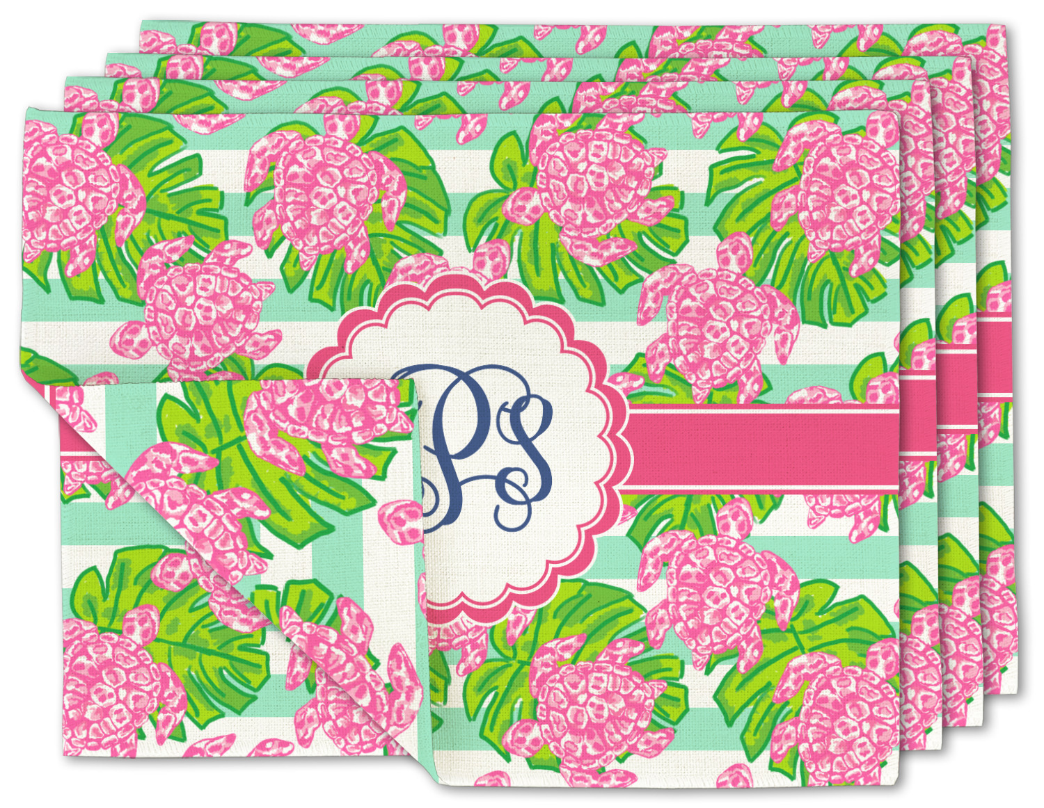 Looking for something Preppy? This design has gorgeous flashy pinks and greens and, of course, monograms! The main design is layered with mint & white stripes, beautiful green leaves and some adorable pink turtles. This will be the perfect design for a typical college girl!