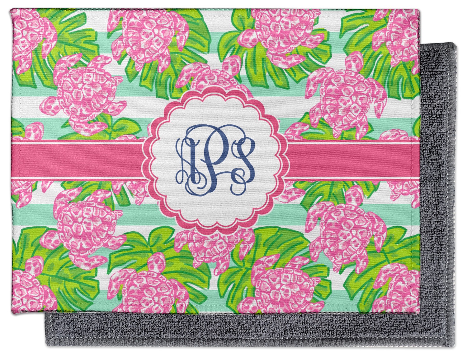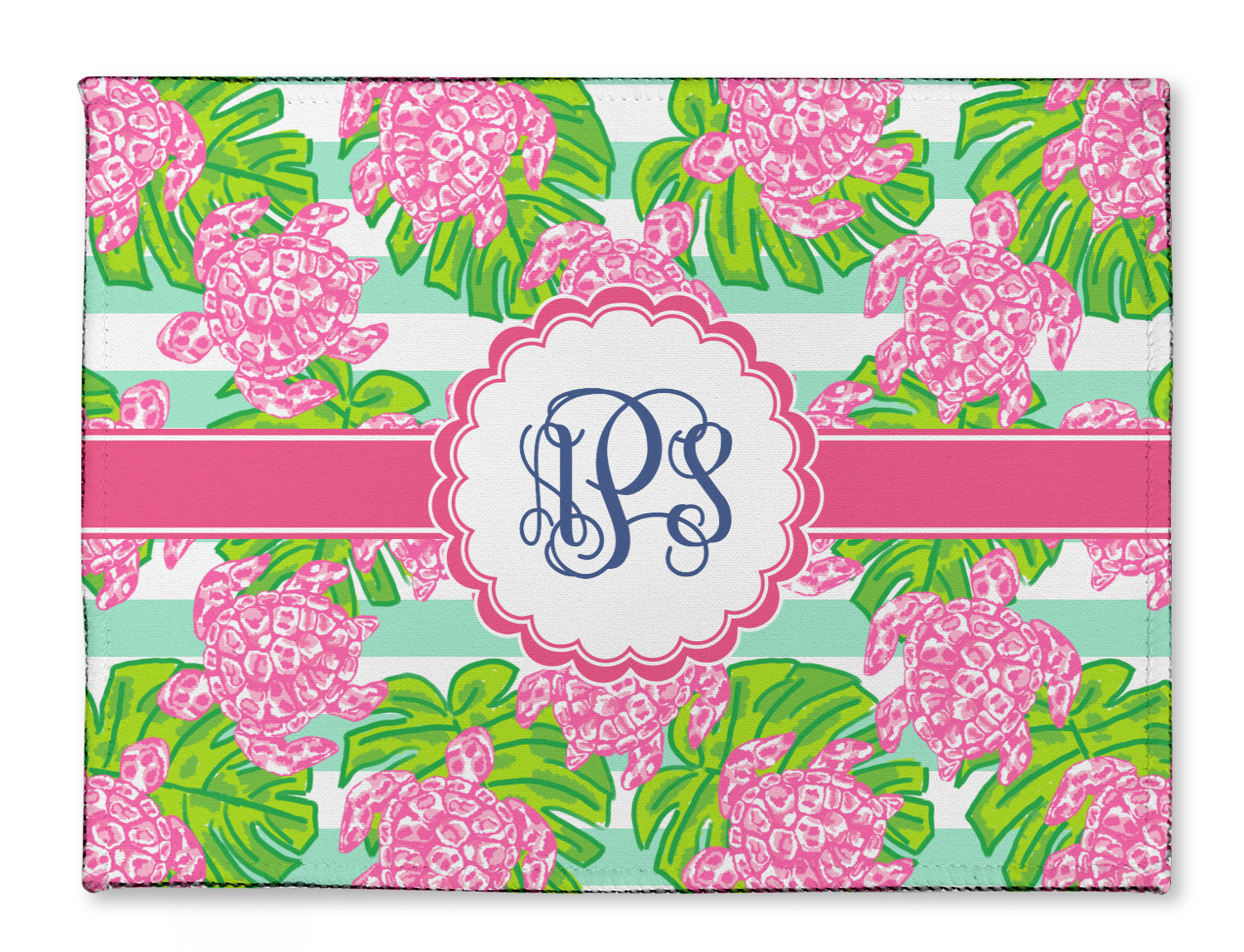 Looking for something Preppy? This design has gorgeous flashy pinks and greens and, of course, monograms! The main design is layered with mint & white stripes, beautiful green leaves and some adorable pink turtles. This will be the perfect design for a typical college girl!