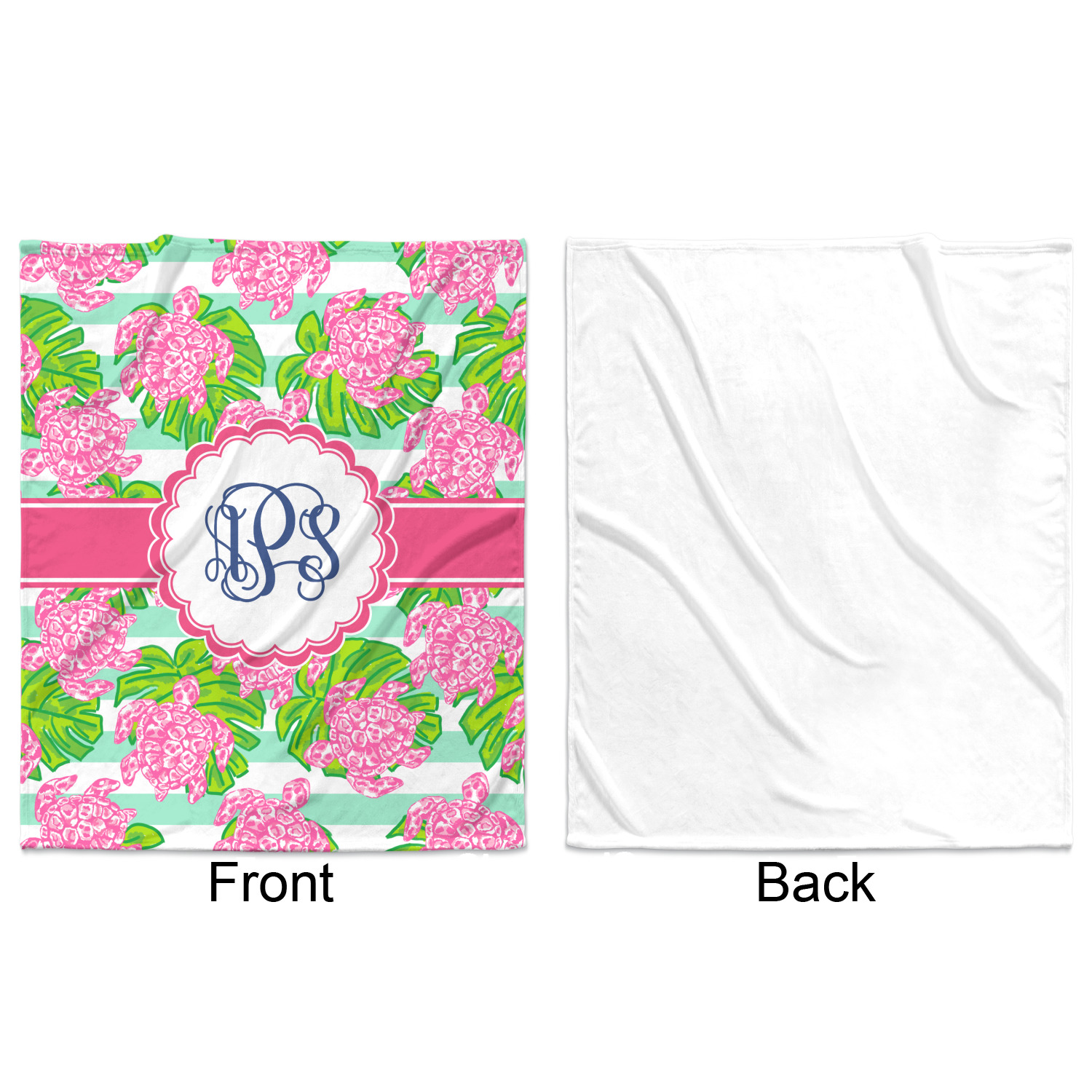 Looking for something Preppy? This design has gorgeous flashy pinks and greens and, of course, monograms! The main design is layered with mint & white stripes, beautiful green leaves and some adorable pink turtles. This will be the perfect design for a typical college girl!