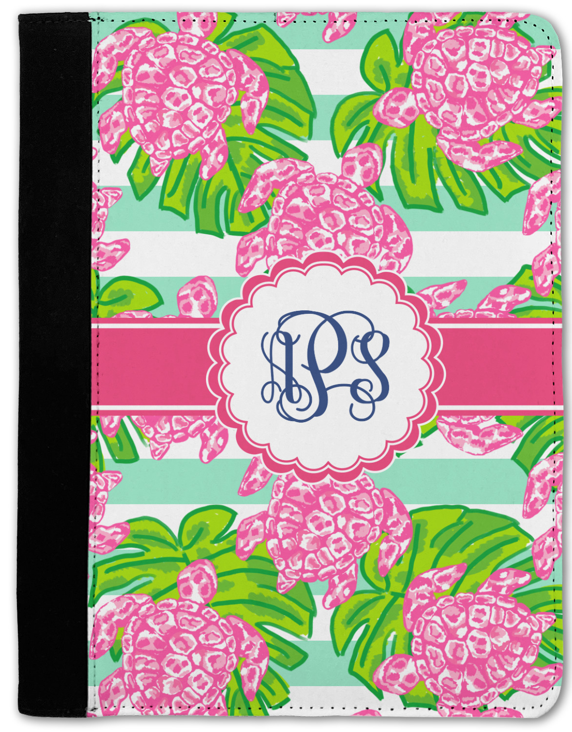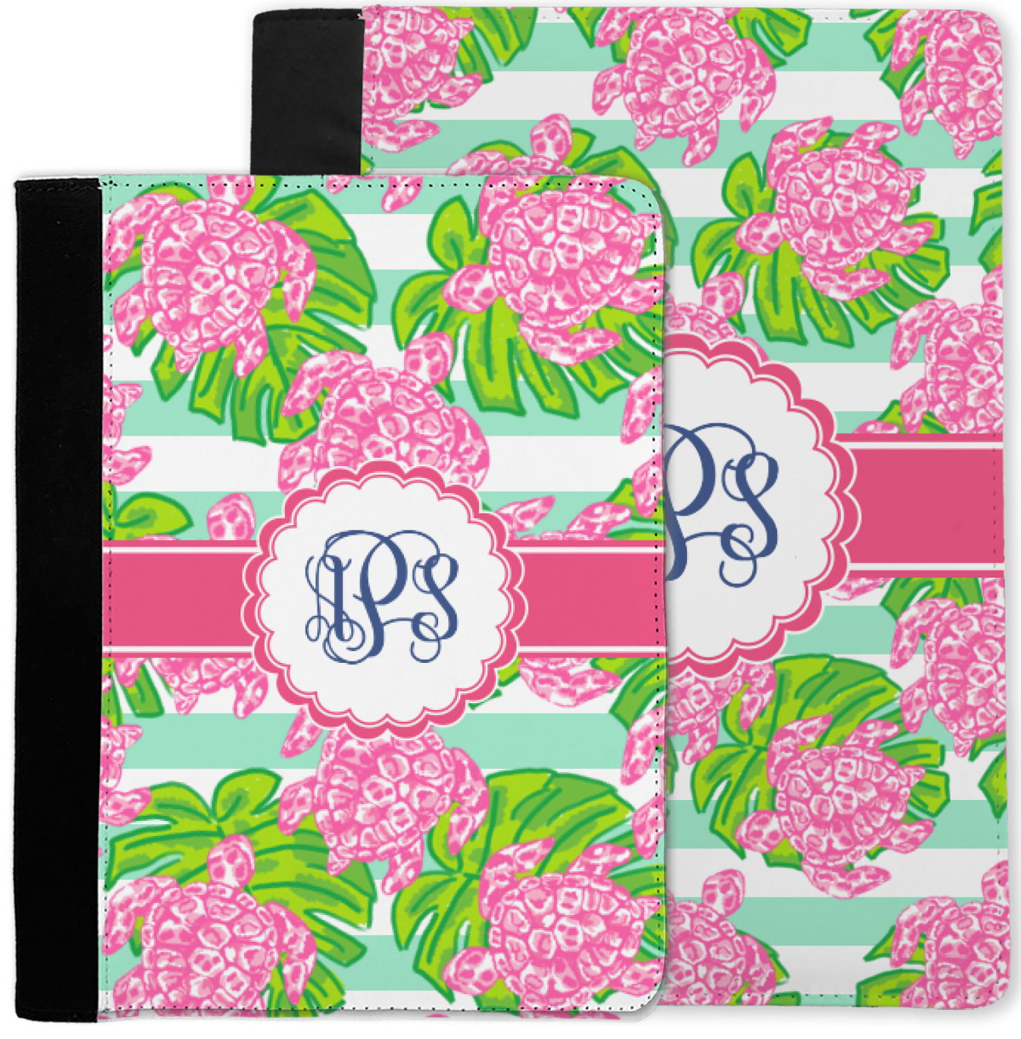 Looking for something Preppy? This design has gorgeous flashy pinks and greens and, of course, monograms! The main design is layered with mint & white stripes, beautiful green leaves and some adorable pink turtles. This will be the perfect design for a typical college girl!