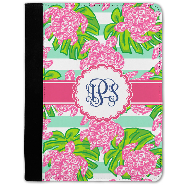 These personalized padfolios are made from a black, polyester microfiber and features a standard, 50-page notepad. However, these black padfolios can accommodate a pad with up to 100 pages. This model also features a slot pocket for any loose sheets of paper, small pockets for business cards, and an elastic band to secure a pen. We print your personalization across the front of this notepad portfolio in bright, vibrant color. These padfolios come in 2 sizes, Medium - approximately 10.25" x 8" for 5" x 8" paper and Large - approximately 12.5" x 8.5" for 8.5" x 11" paper.