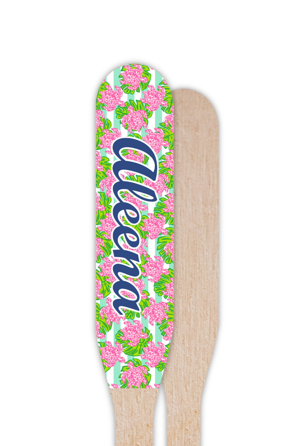 Looking for something Preppy? This design has gorgeous flashy pinks and greens and, of course, monograms! The main design is layered with mint & white stripes, beautiful green leaves and some adorable pink turtles. This will be the perfect design for a typical college girl!