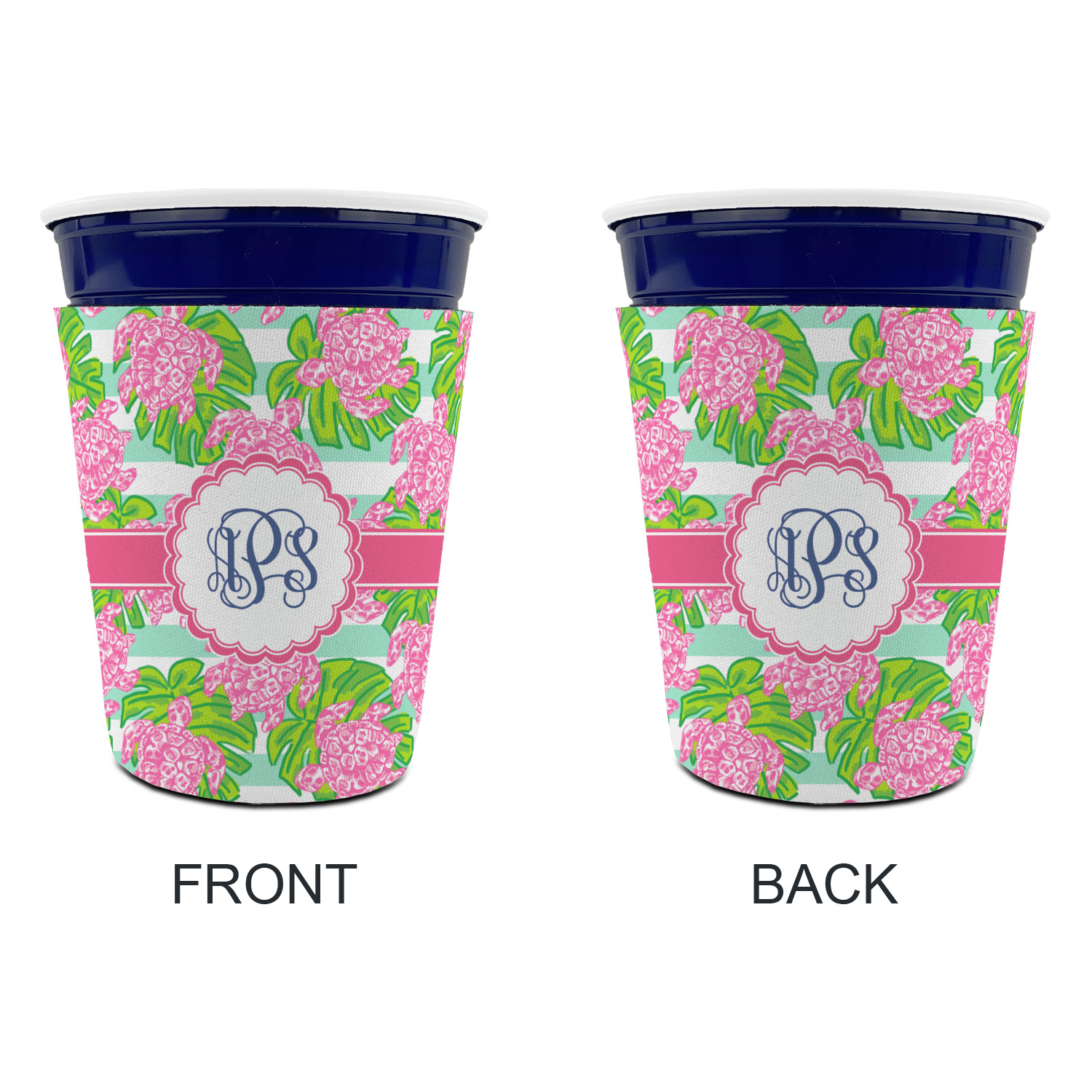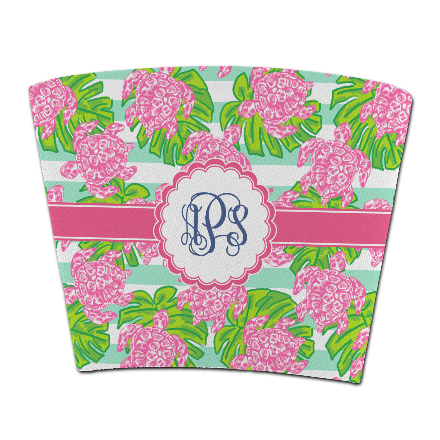 Looking for something Preppy? This design has gorgeous flashy pinks and greens and, of course, monograms! The main design is layered with mint & white stripes, beautiful green leaves and some adorable pink turtles. This will be the perfect design for a typical college girl!