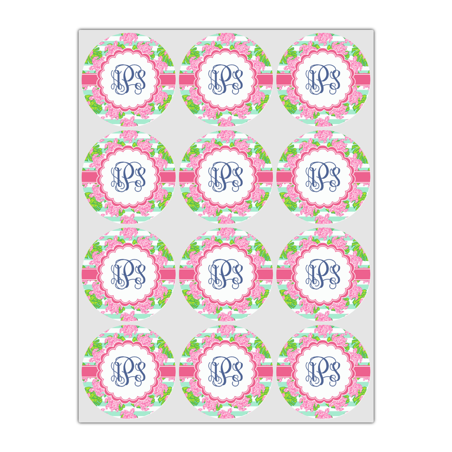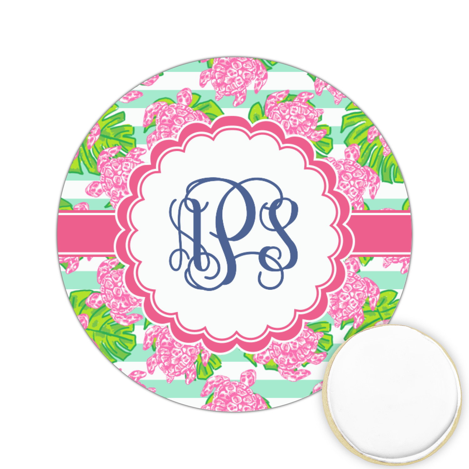 Looking for something Preppy? This design has gorgeous flashy pinks and greens and, of course, monograms! The main design is layered with mint & white stripes, beautiful green leaves and some adorable pink turtles. This will be the perfect design for a typical college girl!