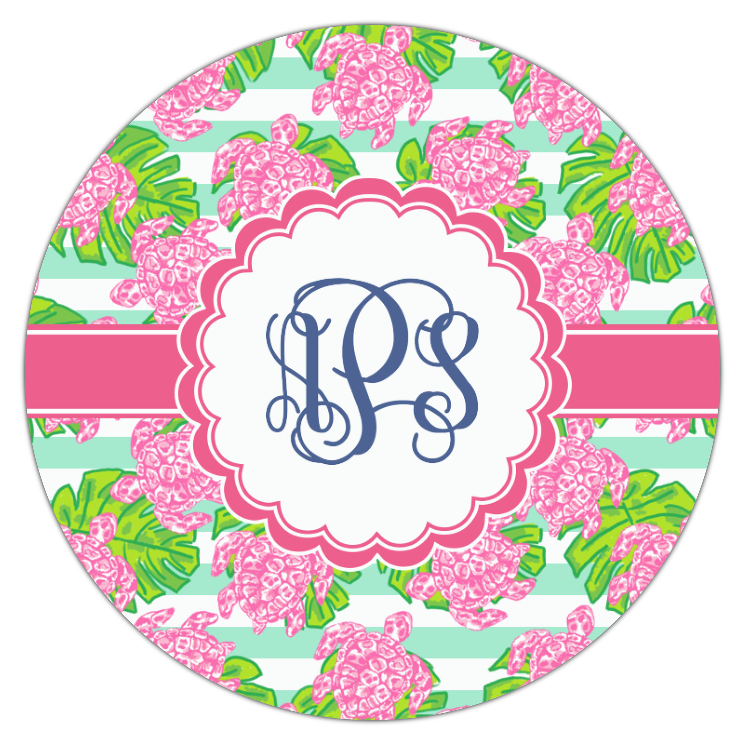 Looking for something Preppy? This design has gorgeous flashy pinks and greens and, of course, monograms! The main design is layered with mint & white stripes, beautiful green leaves and some adorable pink turtles. This will be the perfect design for a typical college girl!