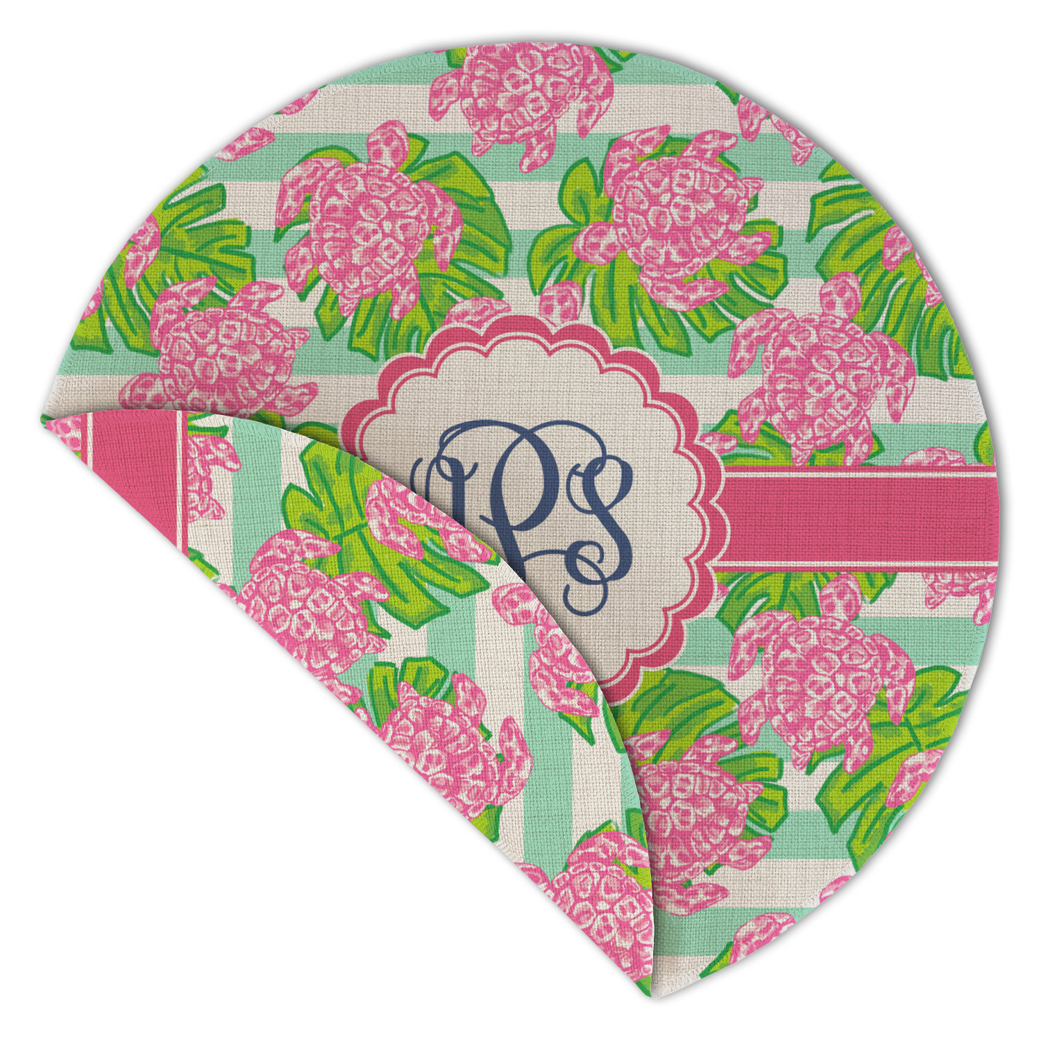 Looking for something Preppy? This design has gorgeous flashy pinks and greens and, of course, monograms! The main design is layered with mint & white stripes, beautiful green leaves and some adorable pink turtles. This will be the perfect design for a typical college girl!