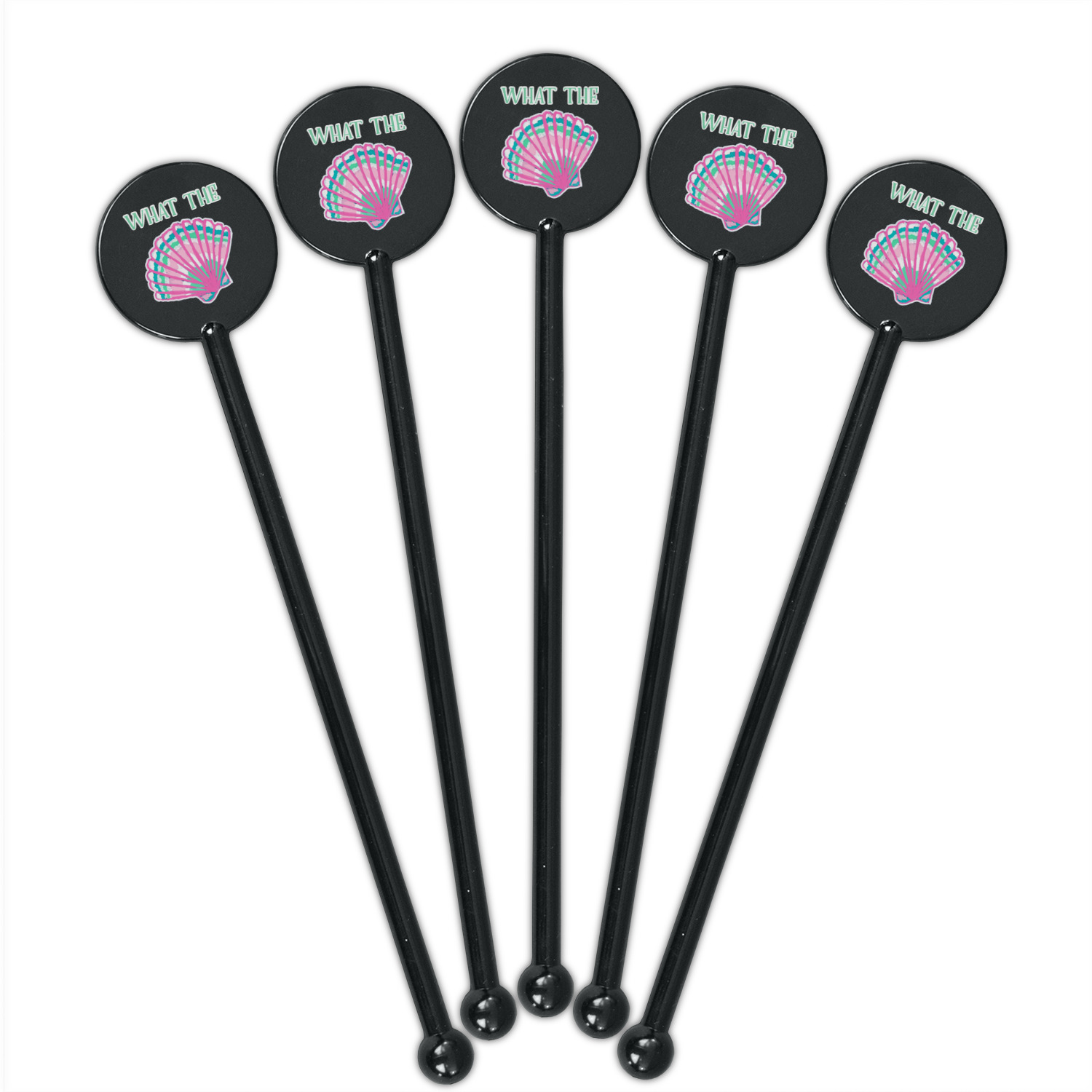 Coastal / Beach Style Designs for 5.5" Round Plastic Stir Sticks - Black - Single-Sided