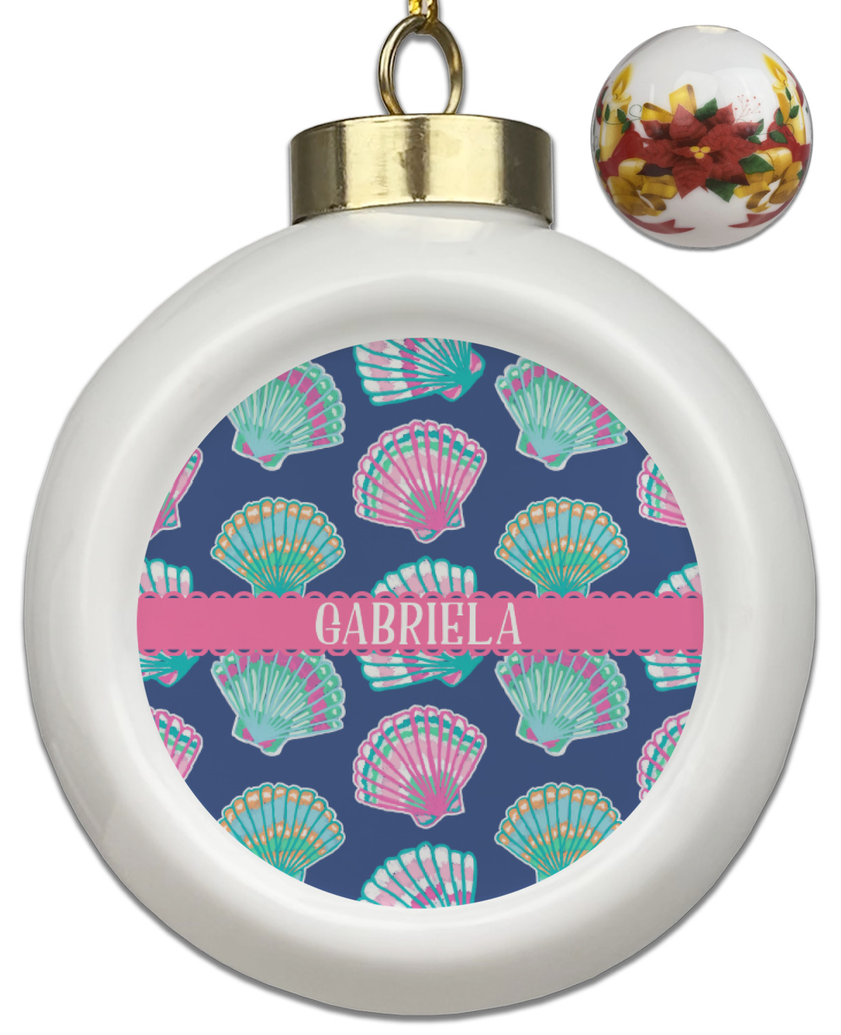 Coastal / Beach Style Designs for Ceramic Ball Ornaments - Poinsettia Garland