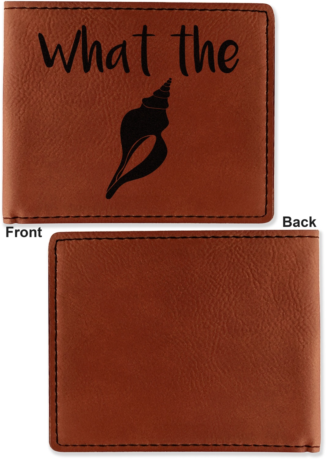 Your bifold wallet will be personalized by laser engraving, which will be a black color on the wallet. Choose a graphic, text, or monogram to personalize your wallet. There are thousands of choices in our design center.