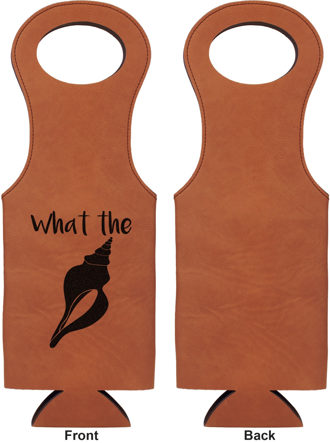 This wine carrier is made from a stunning leatherette, in a cognac-brown color. Strong, black stitching lines the sides of your wine bottle bag and provides extra durability. The interior is lined with a padded, black material to allow for a snug fit once your bottle is placed inside. At the top of this wine gift bag, you'll find two oval shaped handles that elegantly complements the rest of the bag's style. We provide you with the option of laser-engraving the front, or the front and back of your new personalized wine bag!