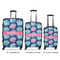 The smallest suitcase is perfect for a carry on (of course, check your airline's dimensions to be sure) while the medium and large suitcases are great as checked bags. The suitcase has 3 different handles. One on the top and the side, each for carrying off the ground. The third is a pop up handle for wheeling your suitcase around on its 4 swivel wheels. Each suitcases size and weight are below: