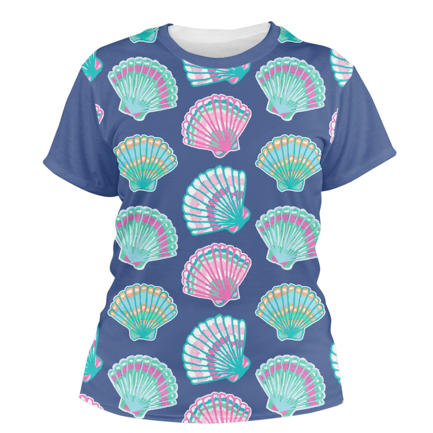 Our womens t-shirts are a lovely jersey knit polyester. They come in 6 different sizes ranging from X-Small to XX-Large. These shirts are your basic comfy crew neck t-shirts that look good on anyone. You are able to personalize the sleeves, front, AND back! Isn't that awesome?! Make everything one color or all different. The choice is yours.