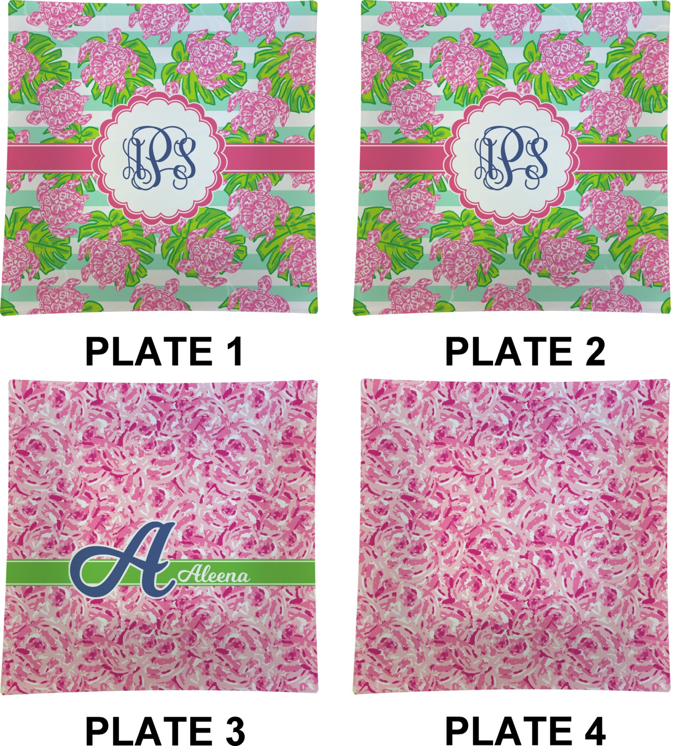 Looking for something Preppy? This design has gorgeous flashy pinks and greens and, of course, monograms! The main design is layered with mint & white stripes, beautiful green leaves and some adorable pink turtles. This will be the perfect design for a typical college girl!