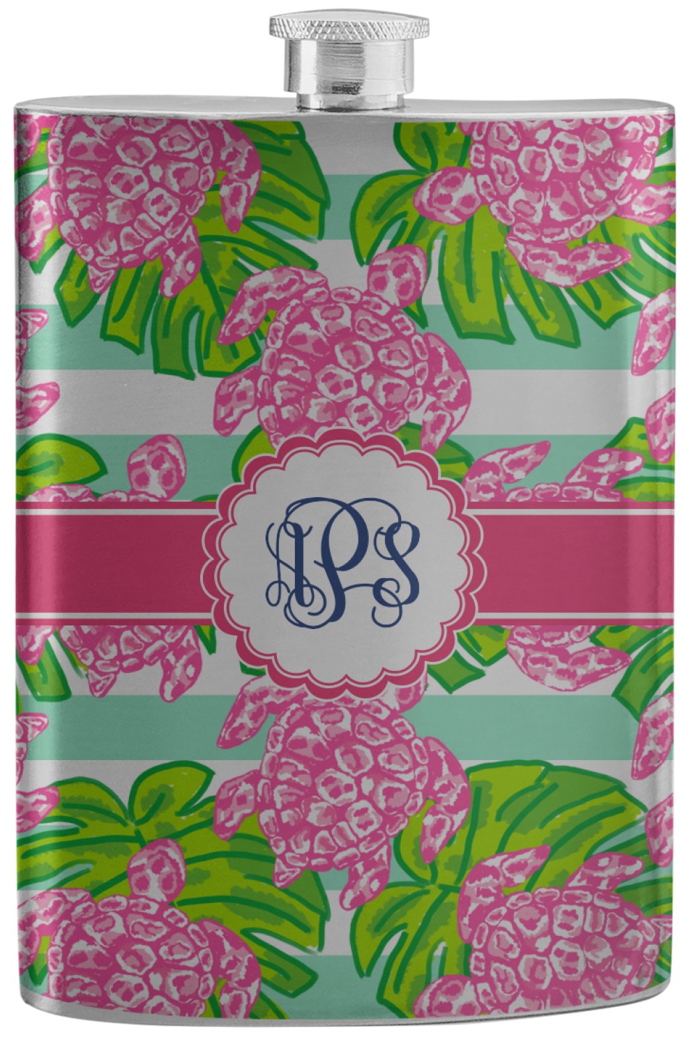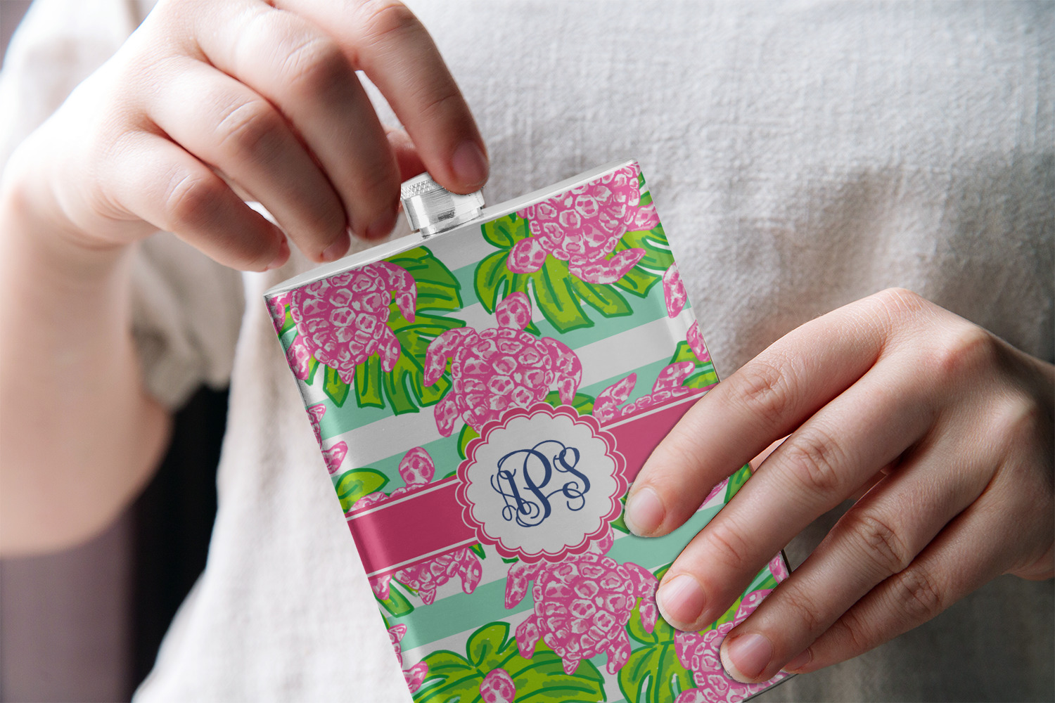 Looking for something Preppy? This design has gorgeous flashy pinks and greens and, of course, monograms! The main design is layered with mint & white stripes, beautiful green leaves and some adorable pink turtles. This will be the perfect design for a typical college girl!