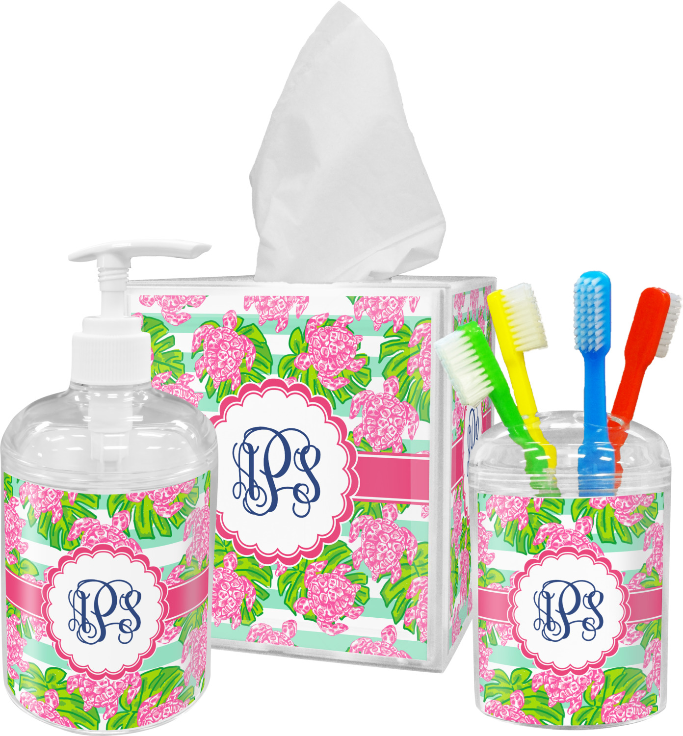 Looking for something Preppy? This design has gorgeous flashy pinks and greens and, of course, monograms! The main design is layered with mint & white stripes, beautiful green leaves and some adorable pink turtles. This will be the perfect design for a typical college girl!