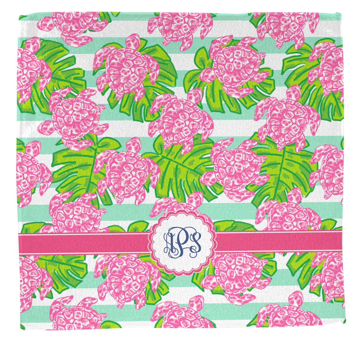 Looking for something Preppy? This design has gorgeous flashy pinks and greens and, of course, monograms! The main design is layered with mint & white stripes, beautiful green leaves and some adorable pink turtles. This will be the perfect design for a typical college girl!