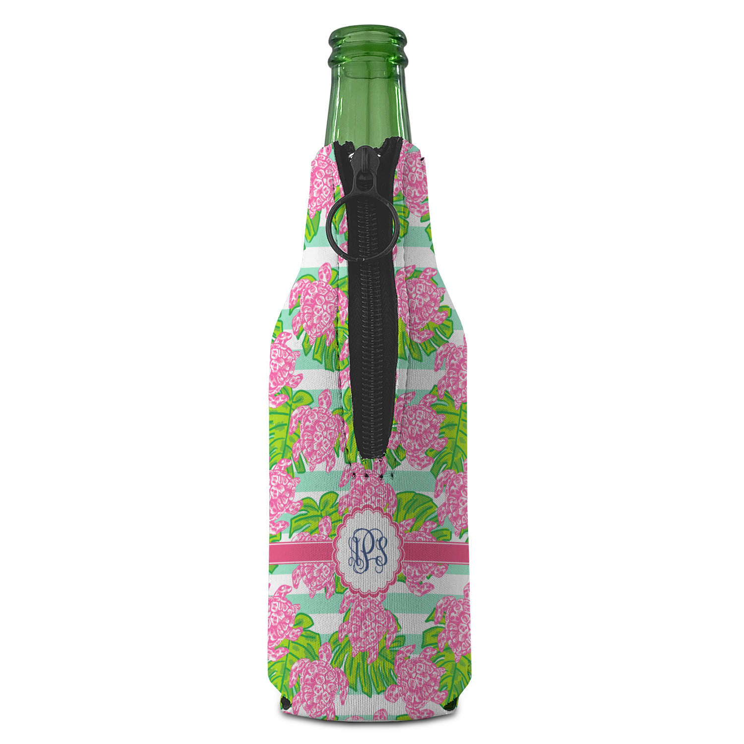 Looking for something Preppy? This design has gorgeous flashy pinks and greens and, of course, monograms! The main design is layered with mint & white stripes, beautiful green leaves and some adorable pink turtles. This will be the perfect design for a typical college girl!