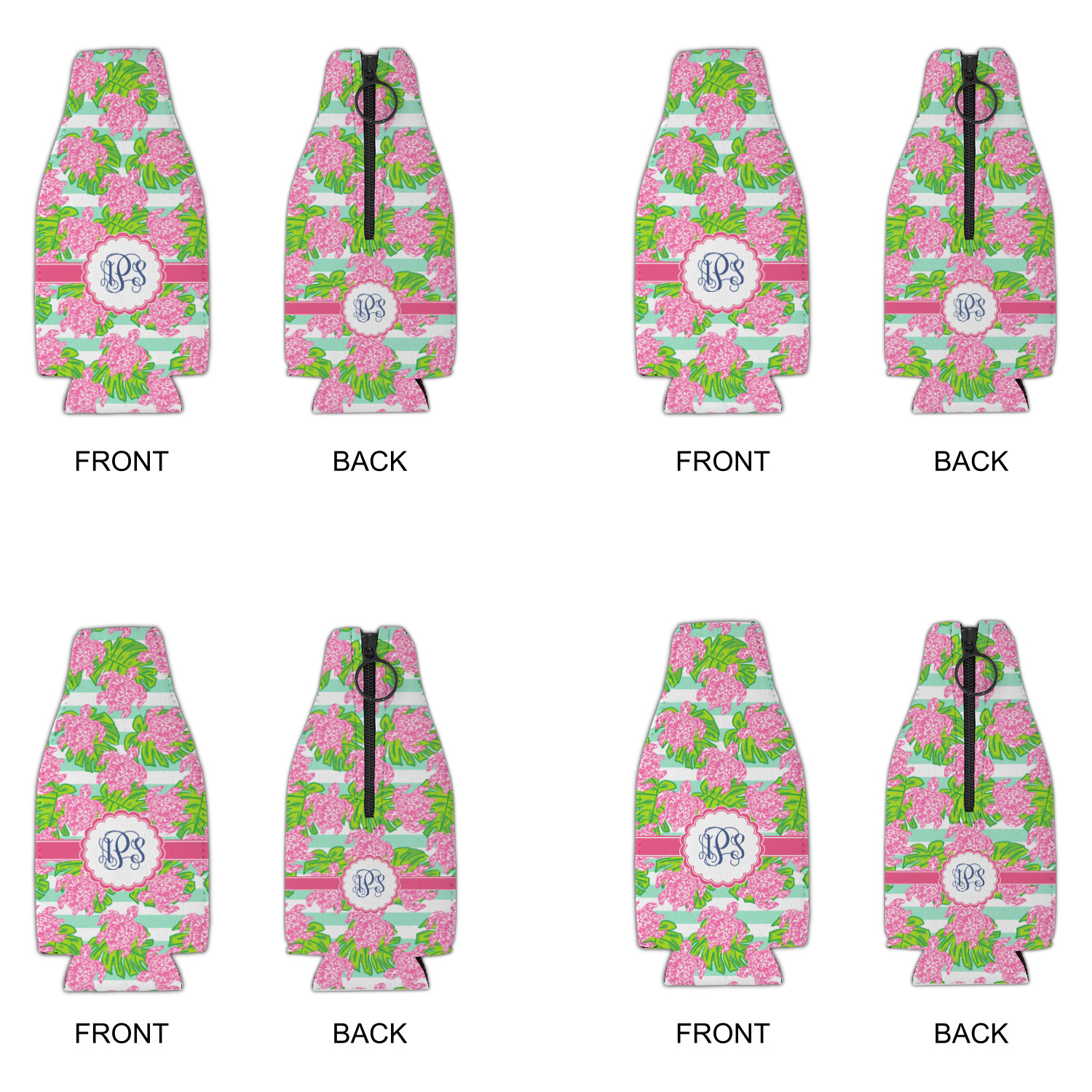 Looking for something Preppy? This design has gorgeous flashy pinks and greens and, of course, monograms! The main design is layered with mint & white stripes, beautiful green leaves and some adorable pink turtles. This will be the perfect design for a typical college girl!