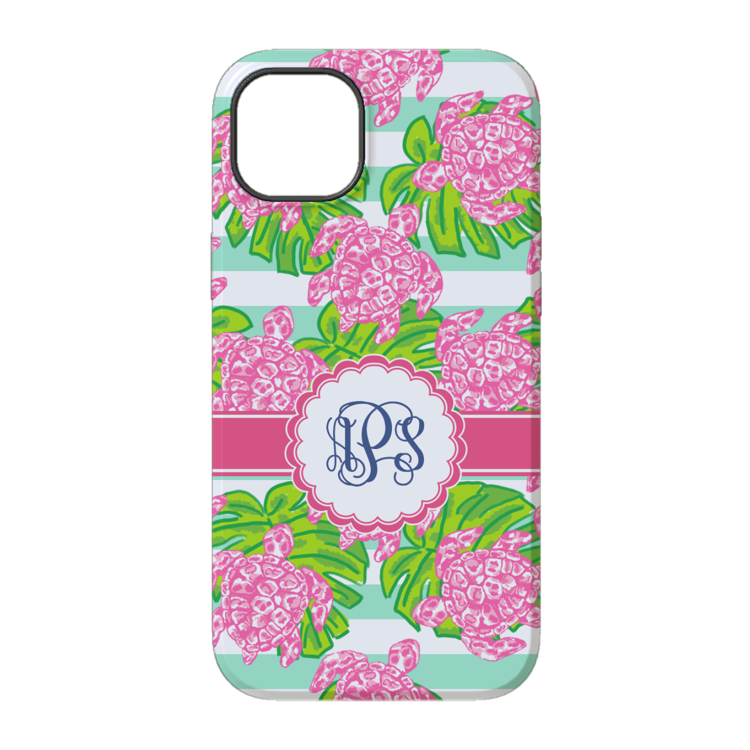 Looking for something Preppy? This design has gorgeous flashy pinks and greens and, of course, monograms! The main design is layered with mint & white stripes, beautiful green leaves and some adorable pink turtles. This will be the perfect design for a typical college girl!