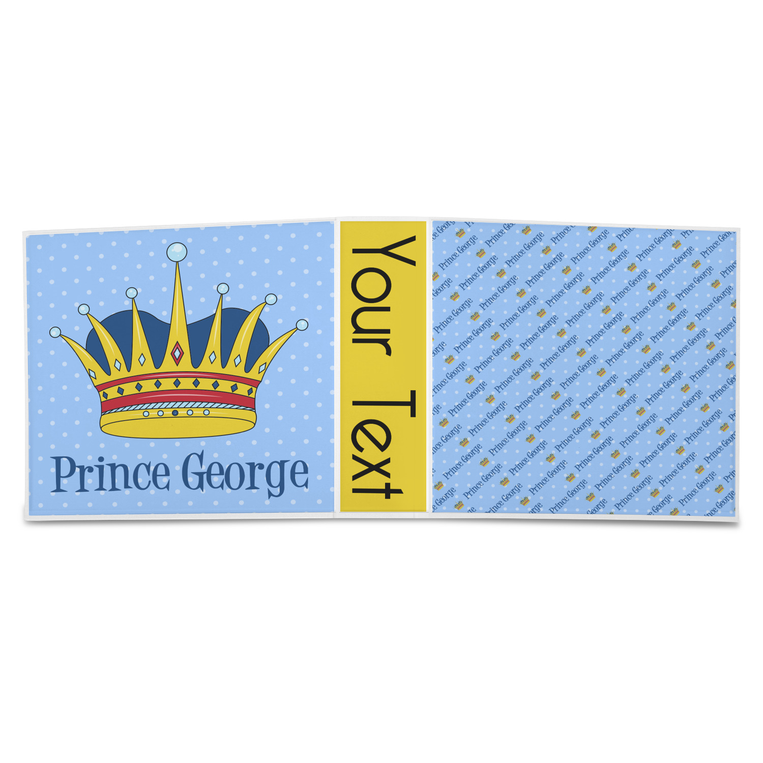 This is truly a unique custom / personalized design for any boy. The design contains a graphic and text and we chose the graphic to be a beautiful crown and the text to be Prince George - thus creating a Prince themed design.