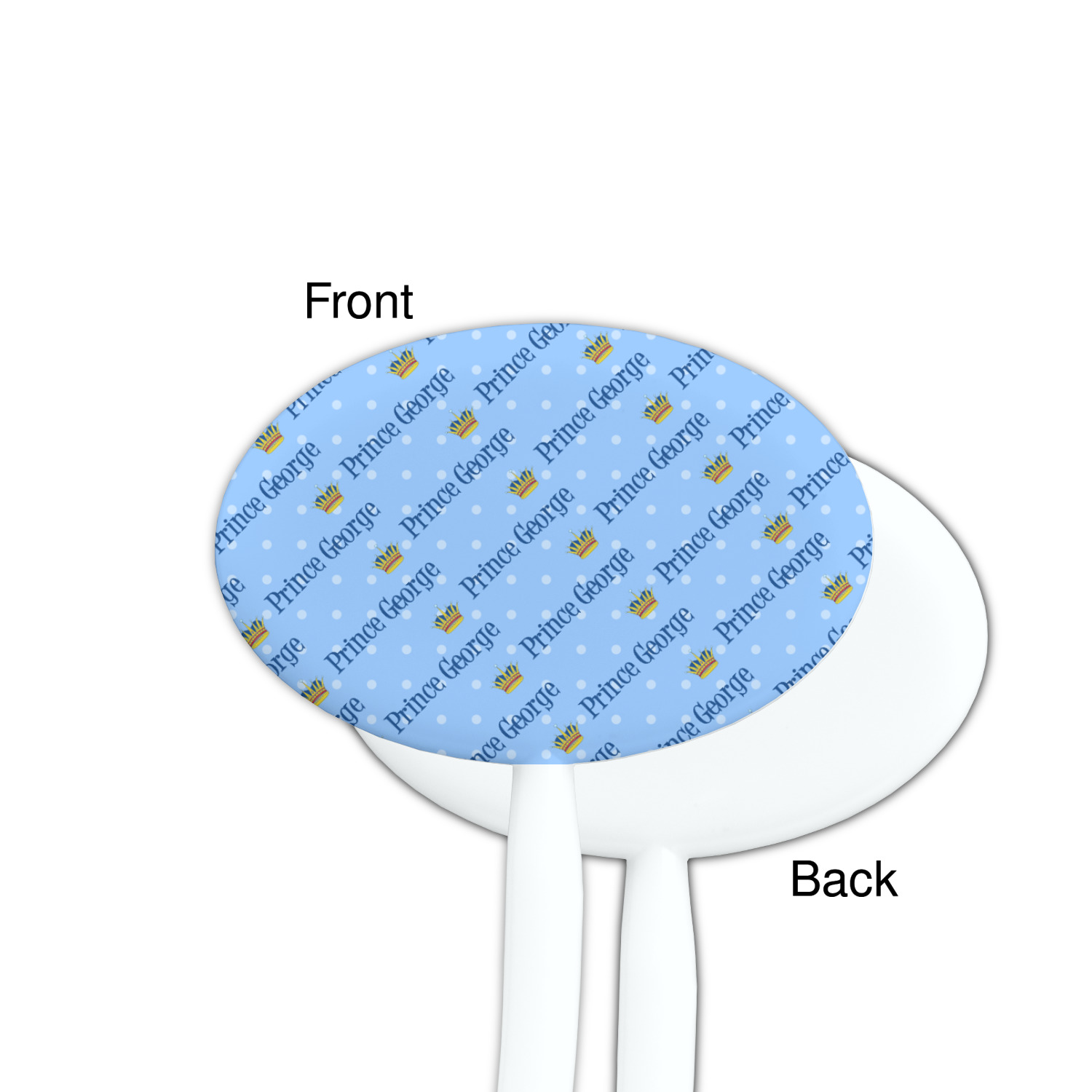 The design can be customized - from as simple as changing the colors and the text, to changing the graphics - we not only have many different crowns in our system, but we also have many other graphics that could also be used e.g. dinosaurs, animals, dragons etc. You can also upload your own graphics or logo. The personalization can be as simple as changing George to your name, or replacing the entire text. You can of course change the colors and the fonts.