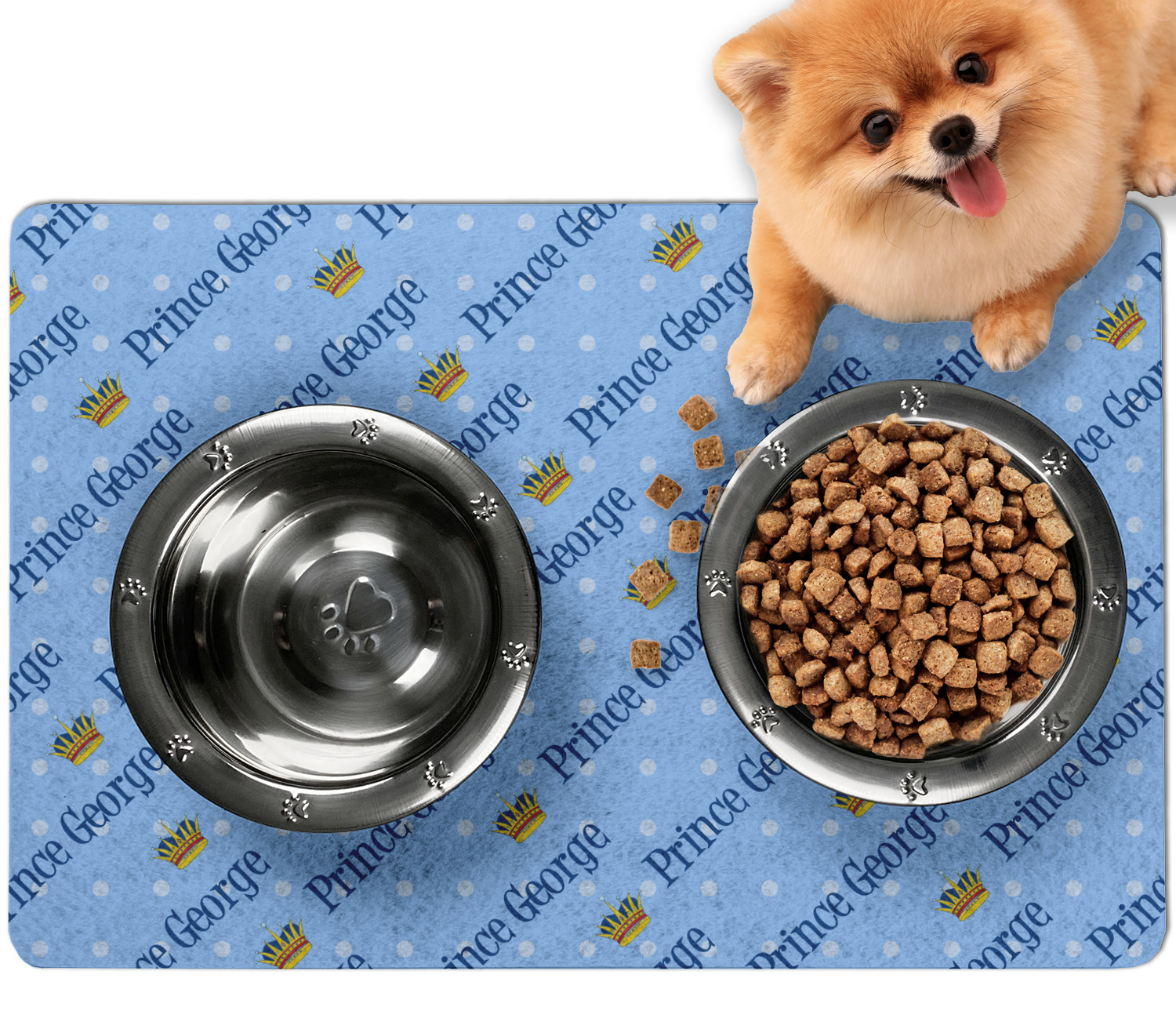 This dog bowl mat, fabricated from polyester, proudly displays your customized design on its top, while its bottom includes a non-slip rubber. This feature allows it to remain firmly in place, even when your dog spills his/her water. With 3 sizes available (18" x 12", 24" x 18", 30" x 24"), the pet food mat has ample space for both a food and water bowl for any sized dogs. Though specified for dogs' use, these mats are also a splendid option for cats.