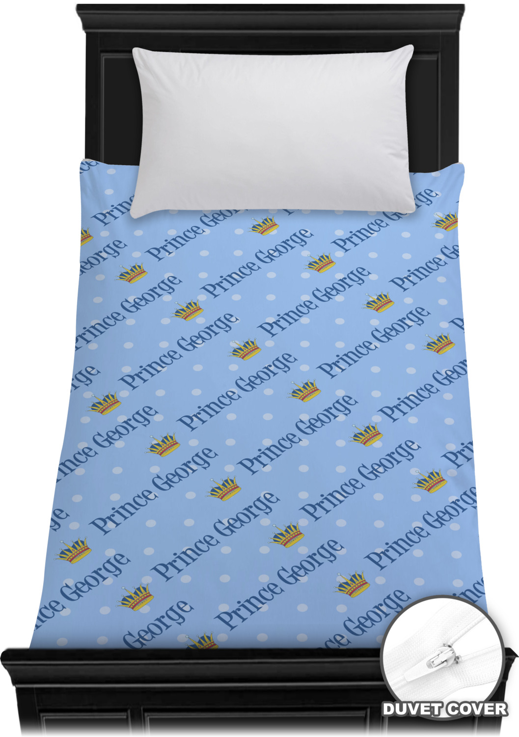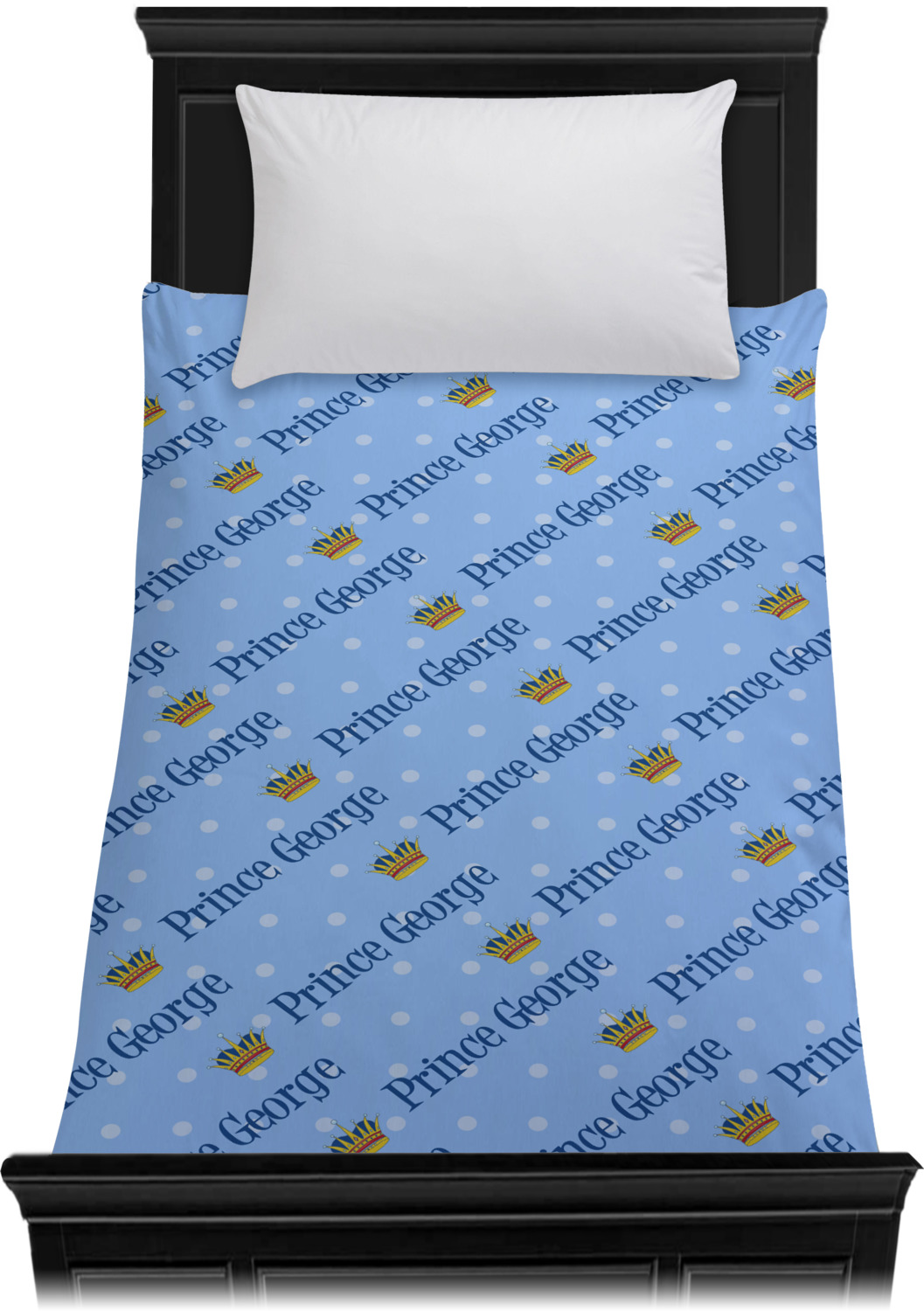 This is truly a unique custom / personalized design for any boy. The design contains a graphic and text and we chose the graphic to be a beautiful crown and the text to be Prince George - thus creating a Prince themed design.