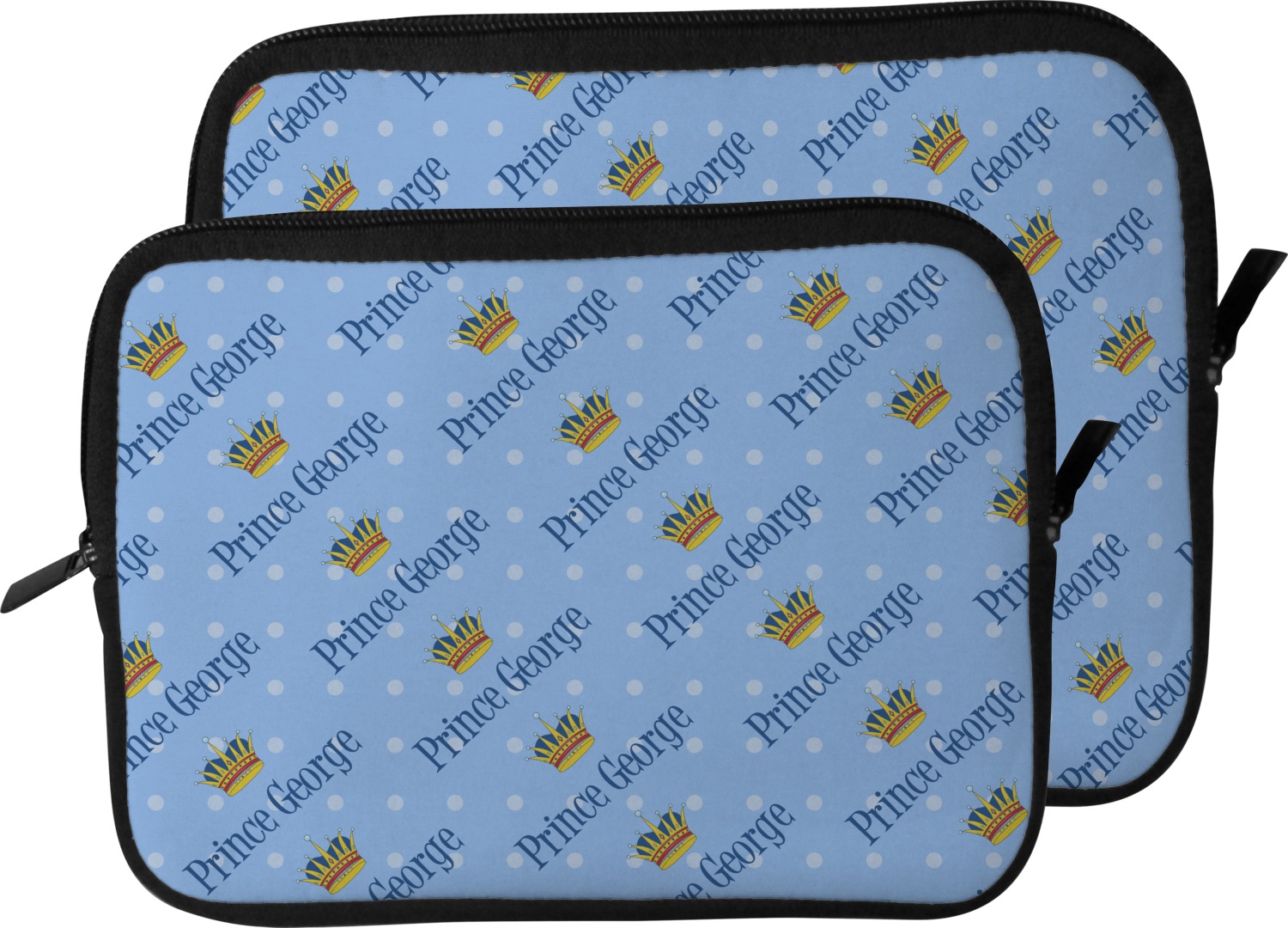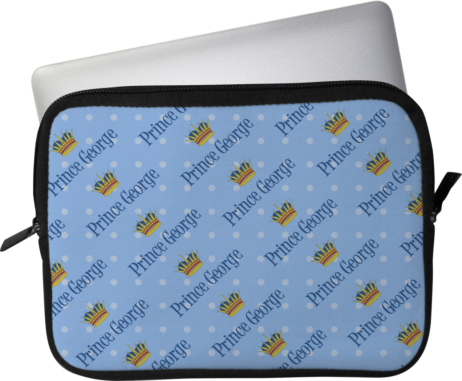 These laptop covers are built from a water-resistant, cushioned neoprene. We display your personalized design on the front of this computer sleeve, while the other sides are simply the black color of the neoprene fabric. A zipper lines the top half of this case, for direct access to your device. For added protection, the interior of this neoprene laptop sleeve is lined with a padded, minky-like material.