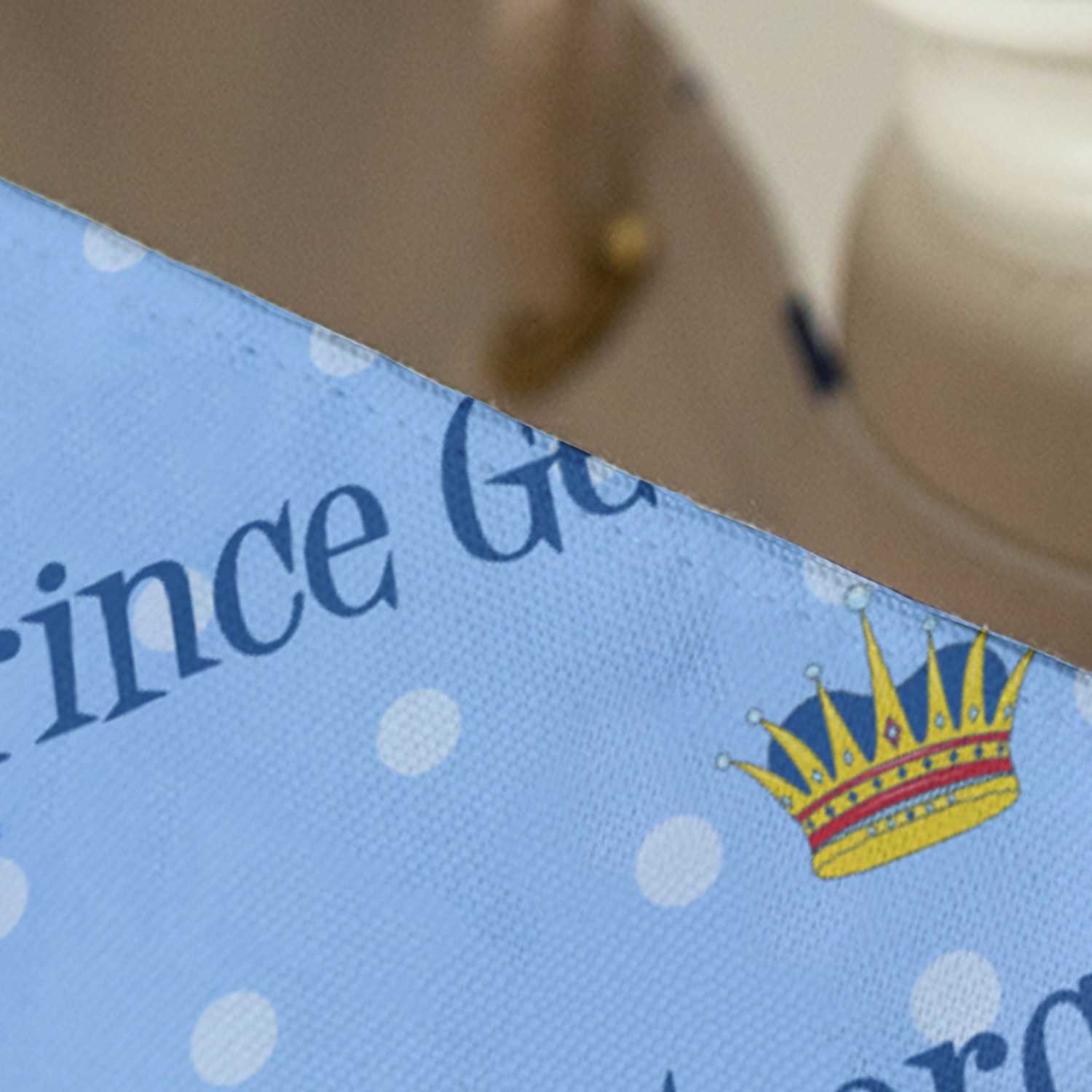 This is truly a unique custom / personalized design for any boy. The design contains a graphic and text and we chose the graphic to be a beautiful crown and the text to be Prince George - thus creating a Prince themed design.