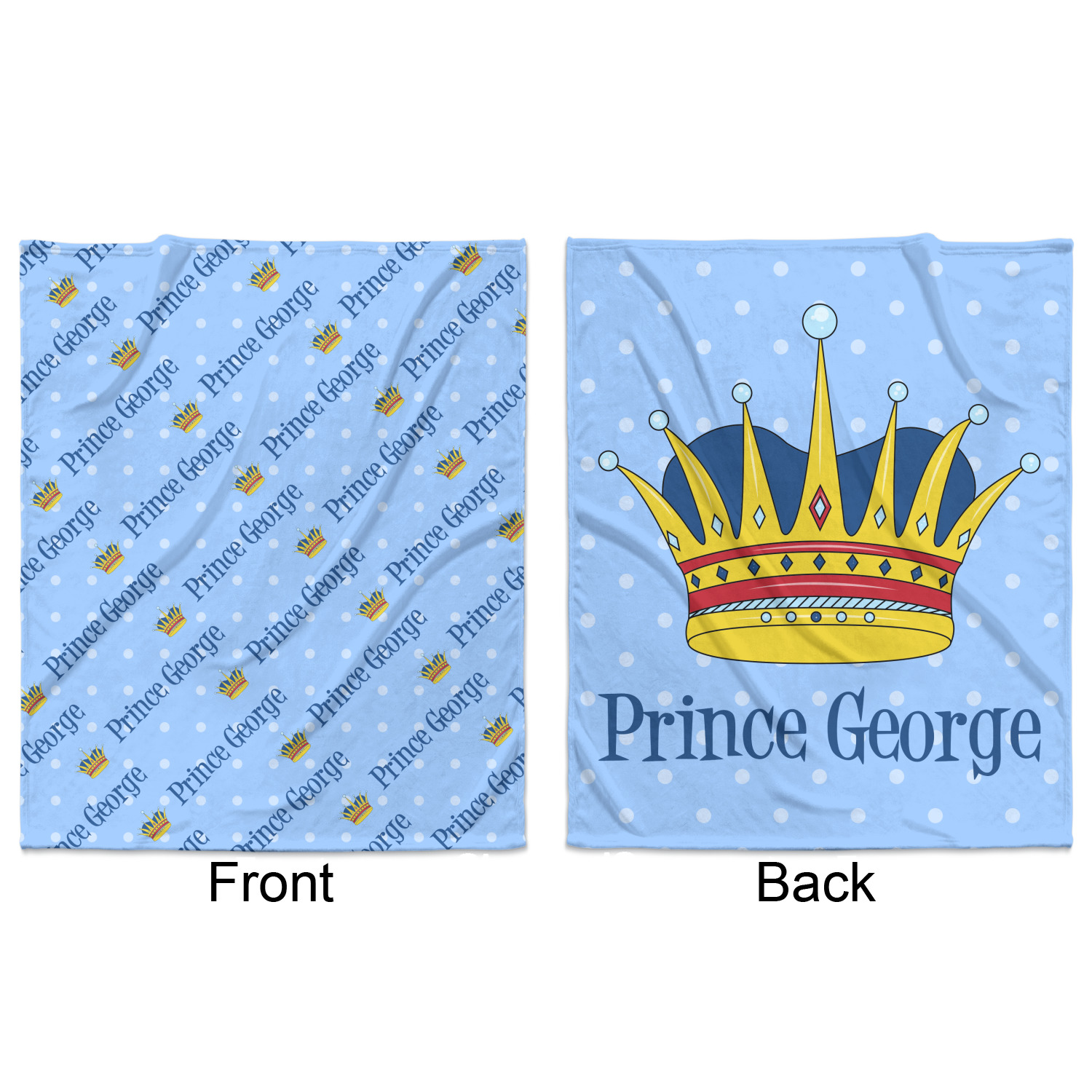 This is truly a unique custom / personalized design for any boy. The design contains a graphic and text and we chose the graphic to be a beautiful crown and the text to be Prince George - thus creating a Prince themed design.