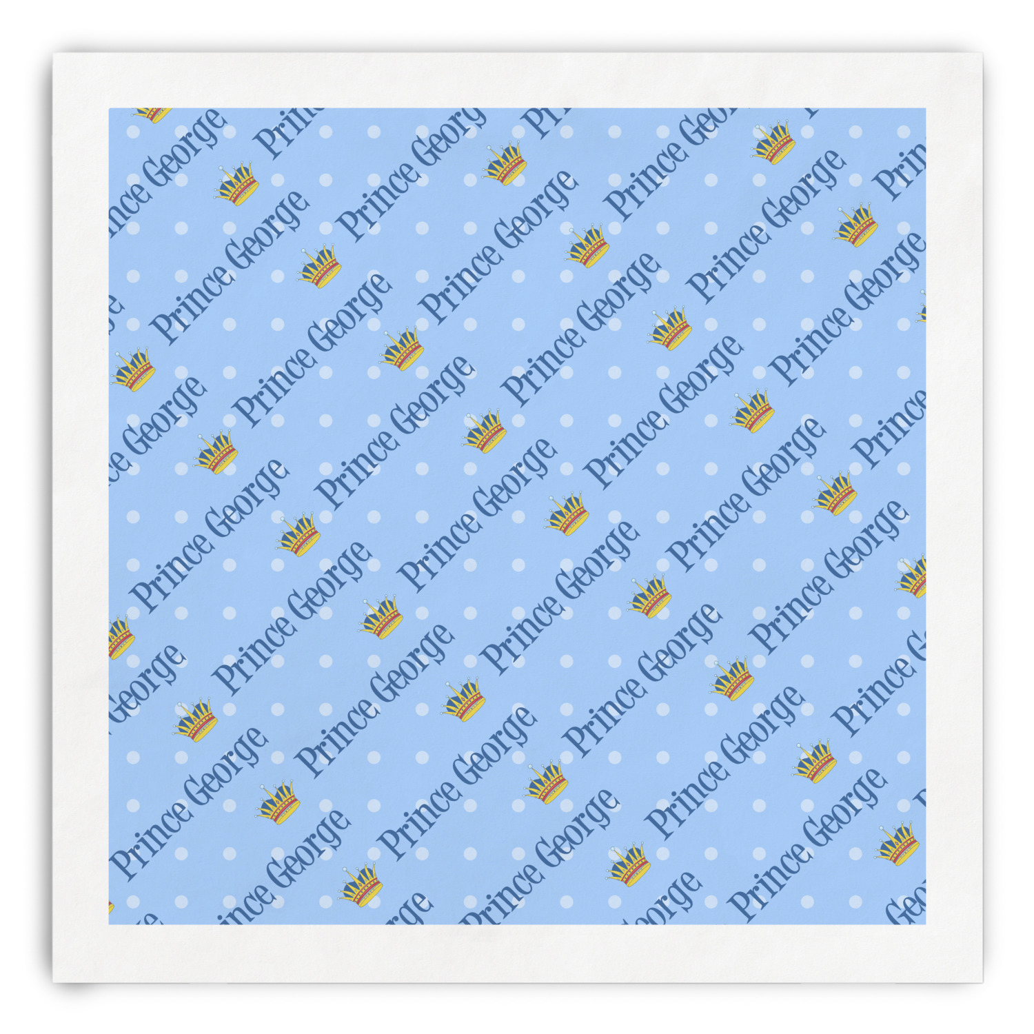 This is truly a unique custom / personalized design for any boy. The design contains a graphic and text and we chose the graphic to be a beautiful crown and the text to be Prince George - thus creating a Prince themed design.