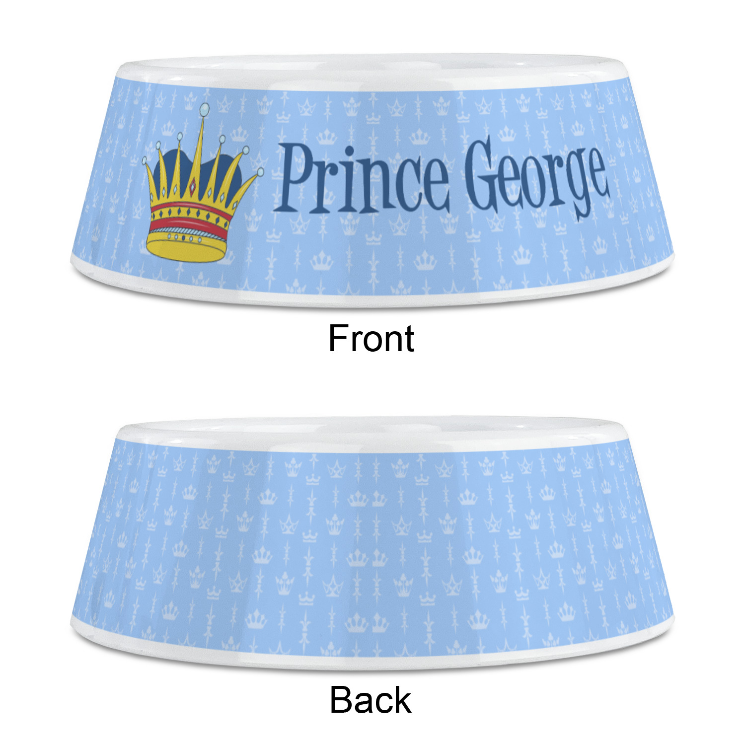 The design can be customized - from as simple as changing the colors and the text, to changing the graphics - we not only have many different crowns in our system, but we also have many other graphics that could also be used e.g. dinosaurs, animals, dragons etc. You can also upload your own graphics or logo. The personalization can be as simple as changing George to your name, or replacing the entire text. You can of course change the colors and the fonts.