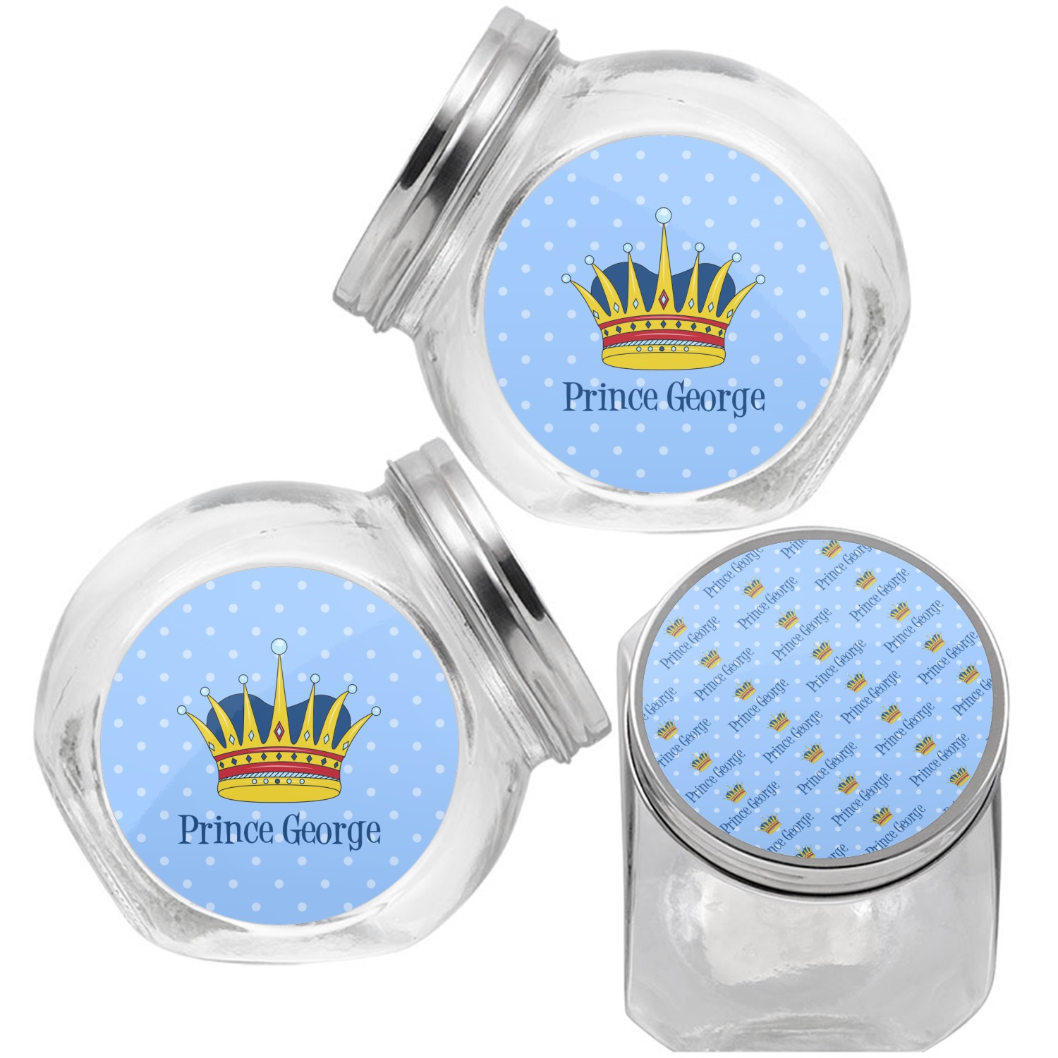The design can be customized - from as simple as changing the colors and the text, to changing the graphics - we not only have many different crowns in our system, but we also have many other graphics that could also be used e.g. dinosaurs, animals, dragons etc. You can also upload your own graphics or logo. The personalization can be as simple as changing George to your name, or replacing the entire text. You can of course change the colors and the fonts.