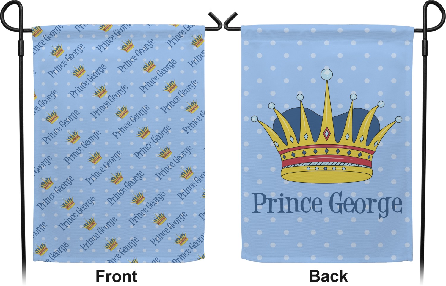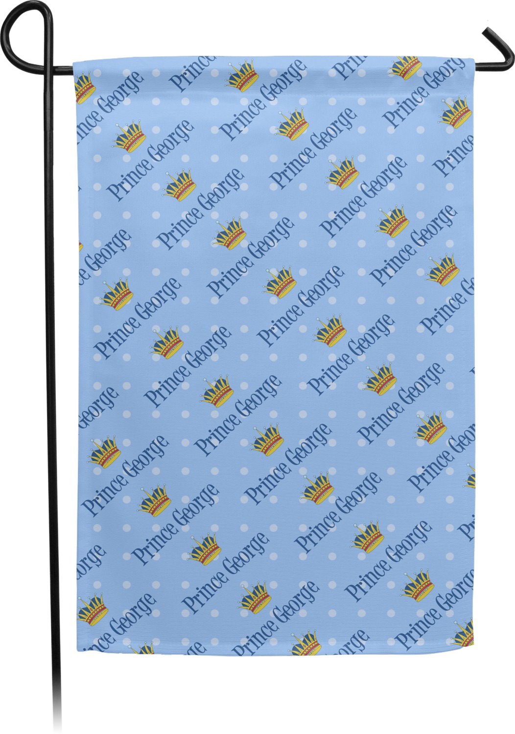 These custom garden flags are made of a durable, double-ply, polyester weave, allowing them to withstand the elements year round. The small flags measure at approximately 12 by 18 inches. The large flags measure out to 28 by 37 inches. You can order these decorative flags with your customization printed on the front only, or the front and back.