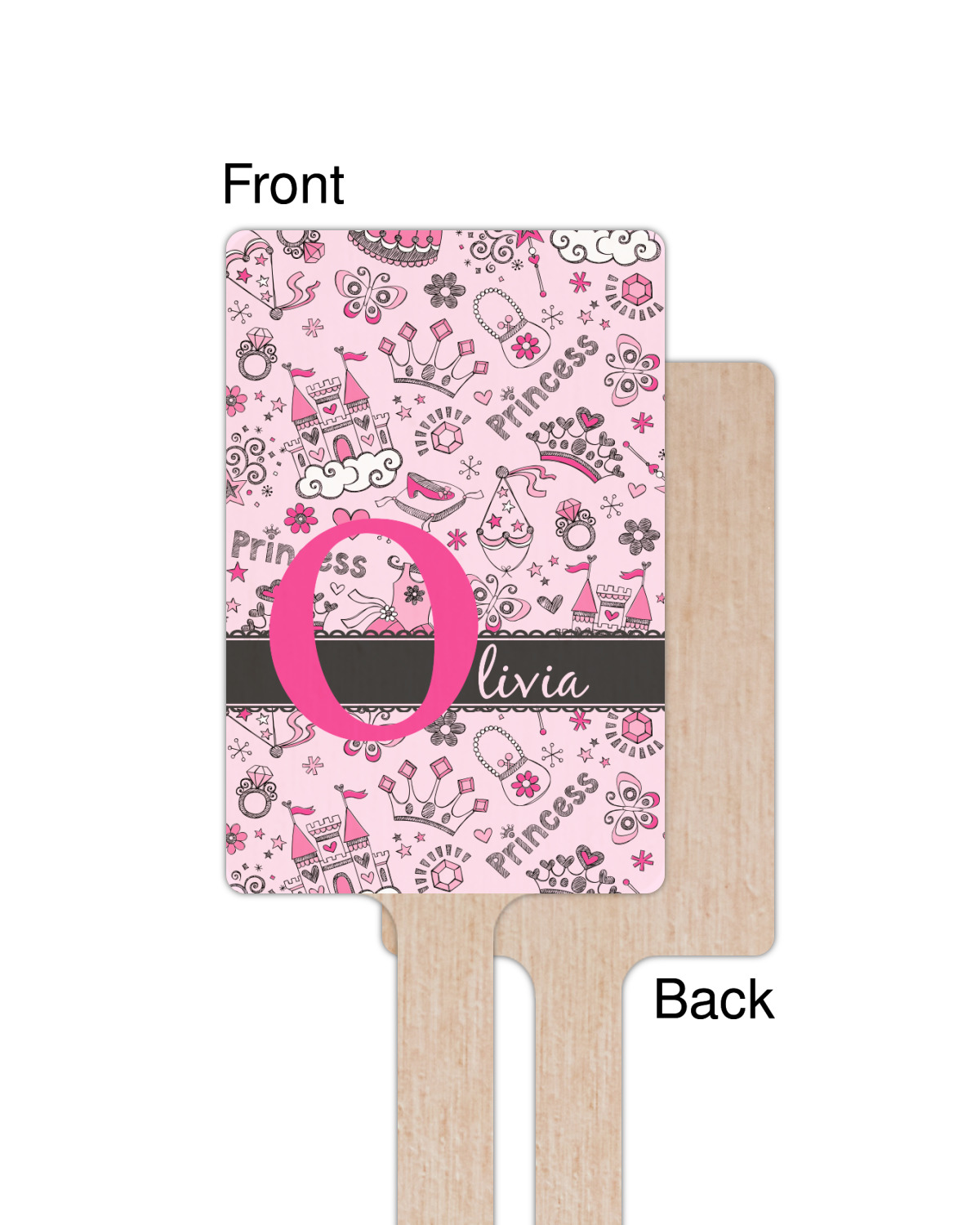We chose to personalized the design with our Large Initial and Text on Ribbon Style. We chose the scalloped ribbon, and dark pink and dark grey for our colors. We have many princesses & women in our system - you can choose any one of those and customize to suit your personal style.