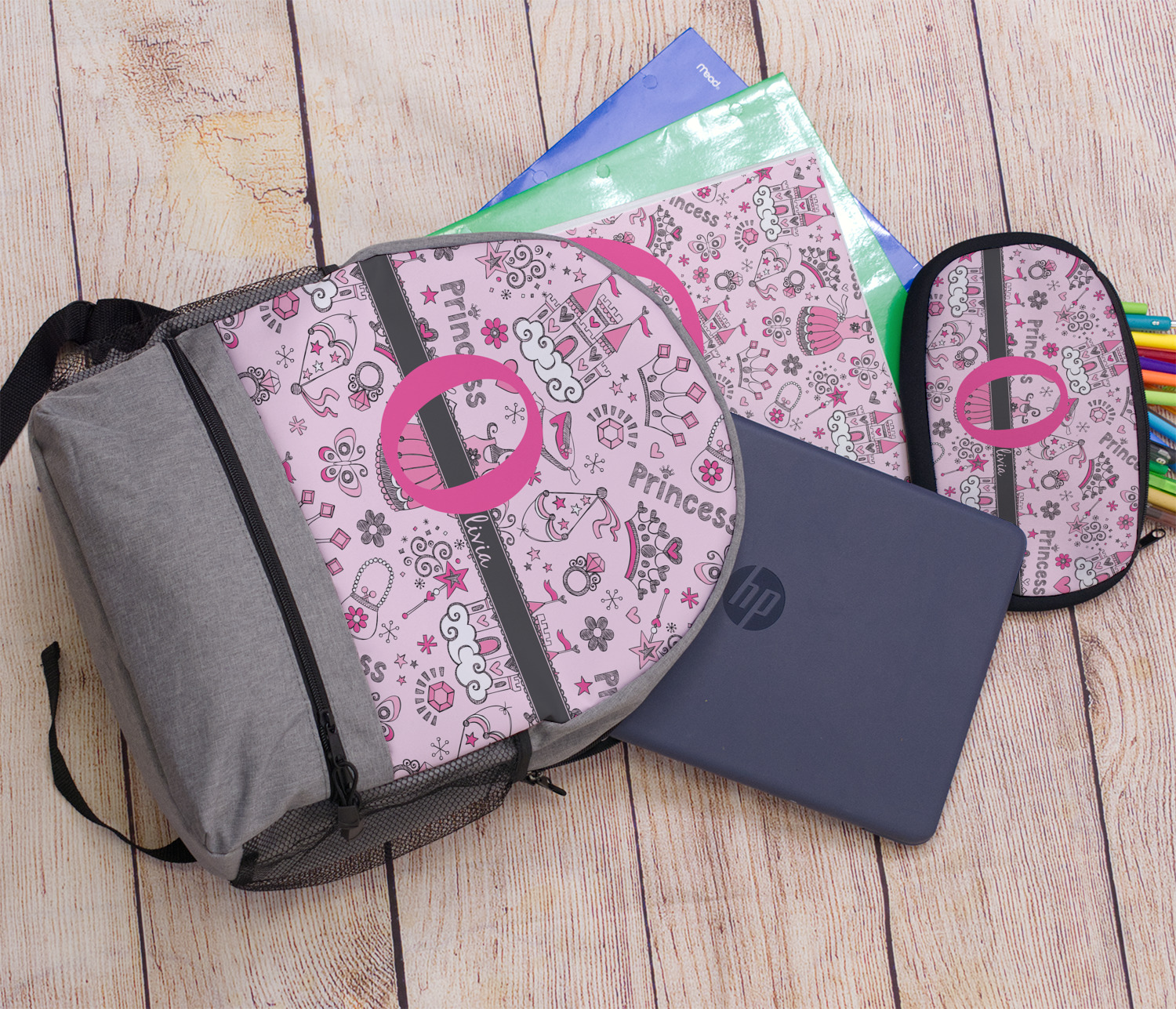 We chose to personalized the design with our Large Initial and Text on Ribbon Style. We chose the scalloped ribbon, and dark pink and dark grey for our colors. We have many princesses & women in our system - you can choose any one of those and customize to suit your personal style.