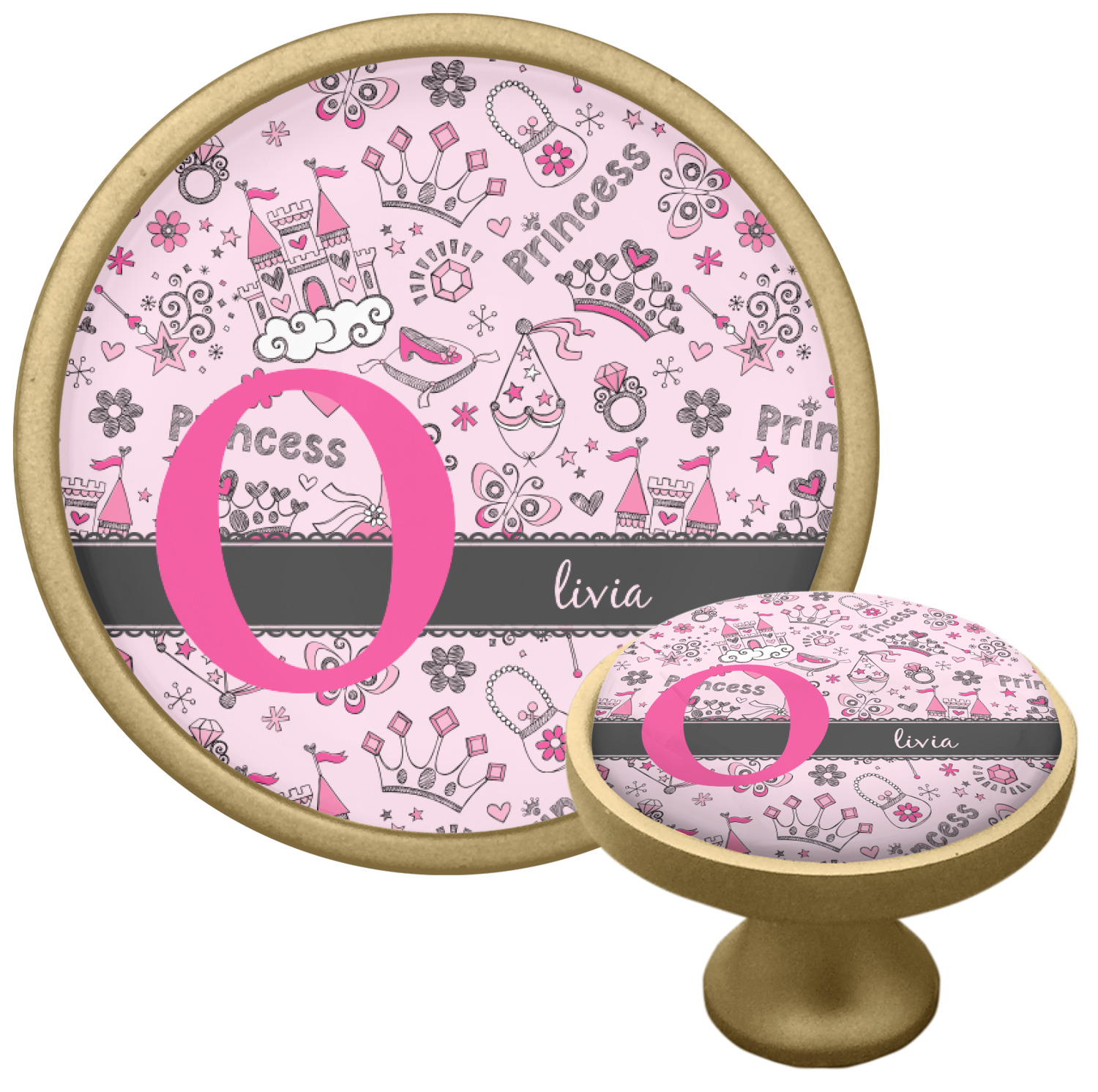 We chose to personalized the design with our Large Initial and Text on Ribbon Style. We chose the scalloped ribbon, and dark pink and dark grey for our colors. We have many princesses & women in our system - you can choose any one of those and customize to suit your personal style.