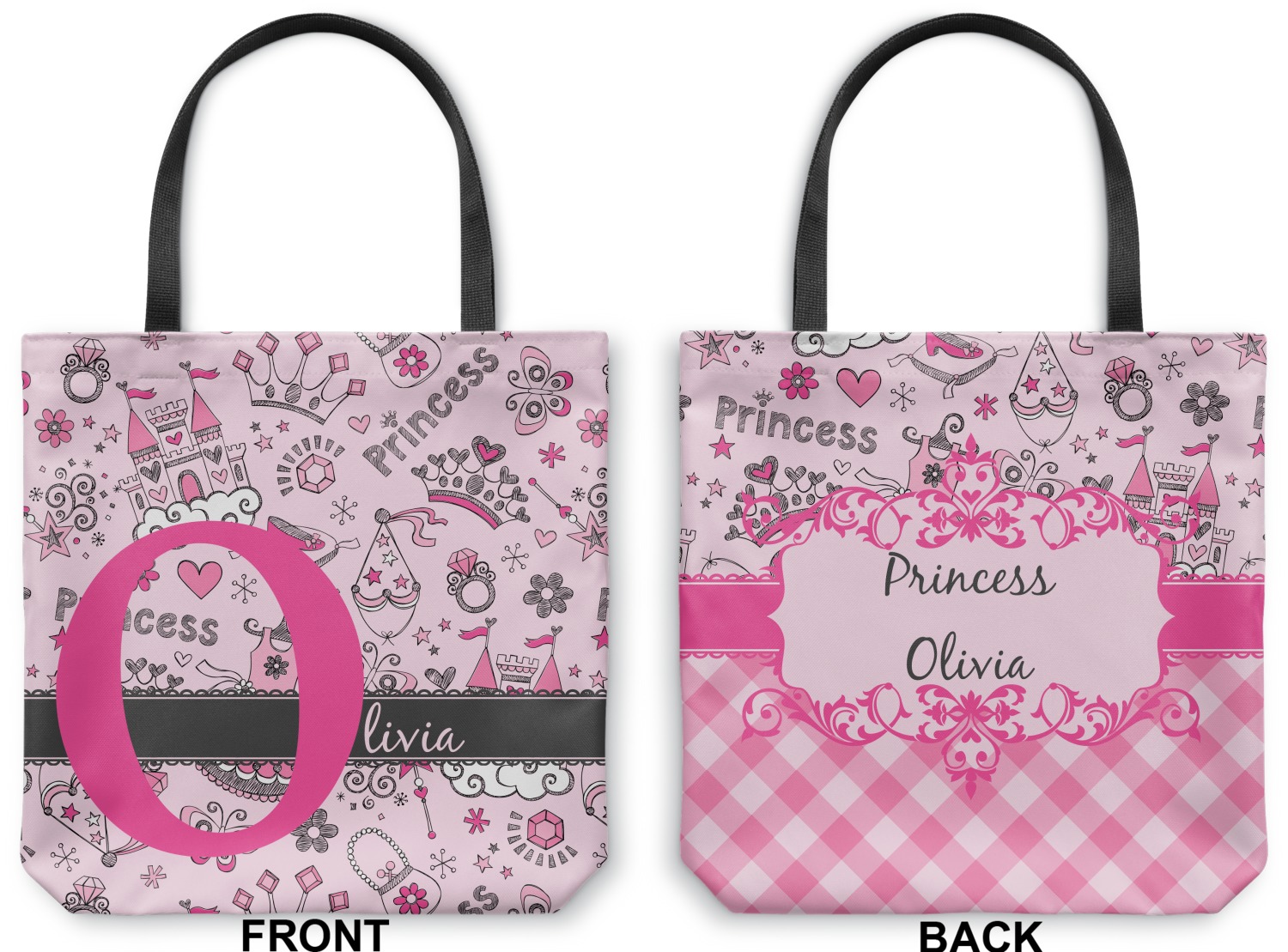We chose to personalized the design with our Large Initial and Text on Ribbon Style. We chose the scalloped ribbon, and dark pink and dark grey for our colors. We have many princesses & women in our system - you can choose any one of those and customize to suit your personal style.