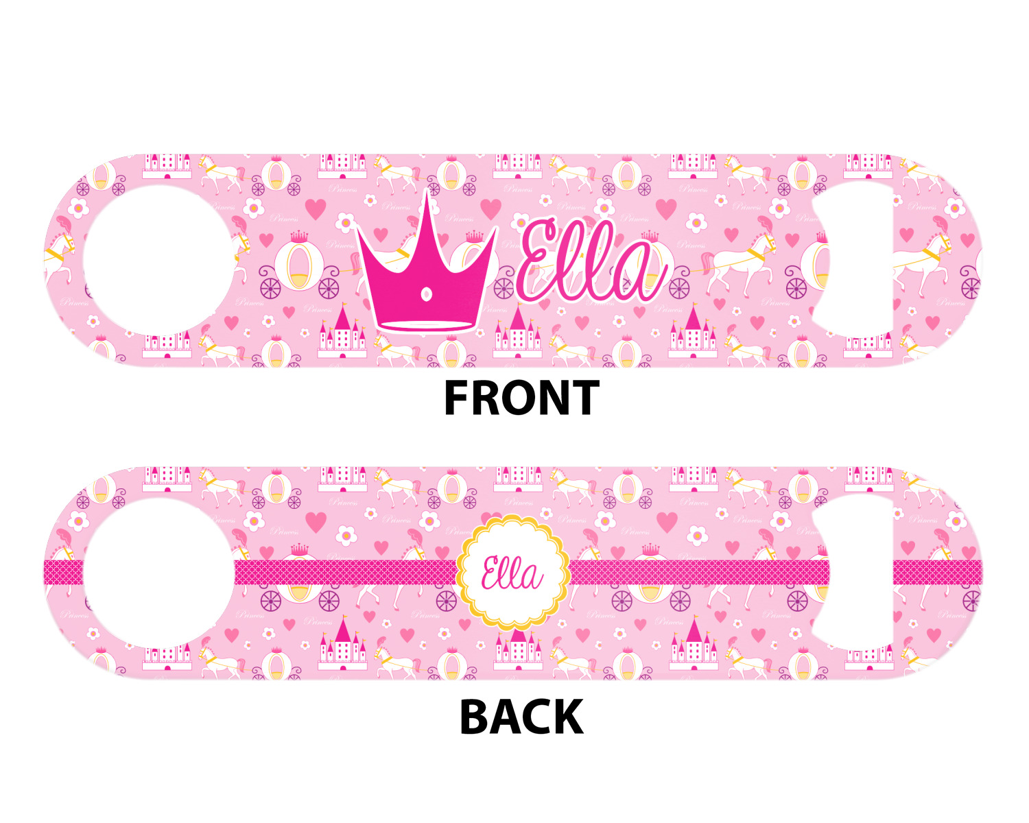 Made from stainless steel, these beer bottle openers are 7 by 1.625 inches, giving you plenty of leverage when trying to open a stubborn bottle. On one end of this personalized bottle opener, you'll find a circular hole for you to hang and display your opener. On the opposite end, you'll find the tool used for opening bottles. This opener in particular has the same structure and style as professional bartender bottle openers. Your customization is sublimated onto both the back and front, and both sides can be customized individually. Choose from one of our two base colors - white or silver.