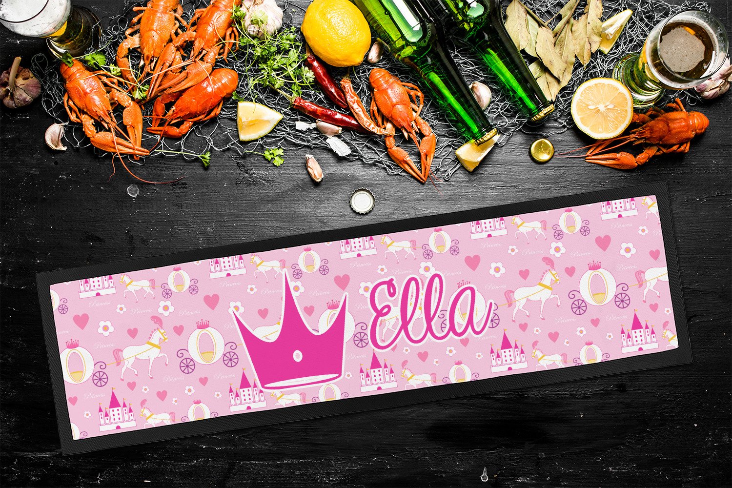 The center piece of the design is a yellow scalloped label, the perfect place for the name of a princess.