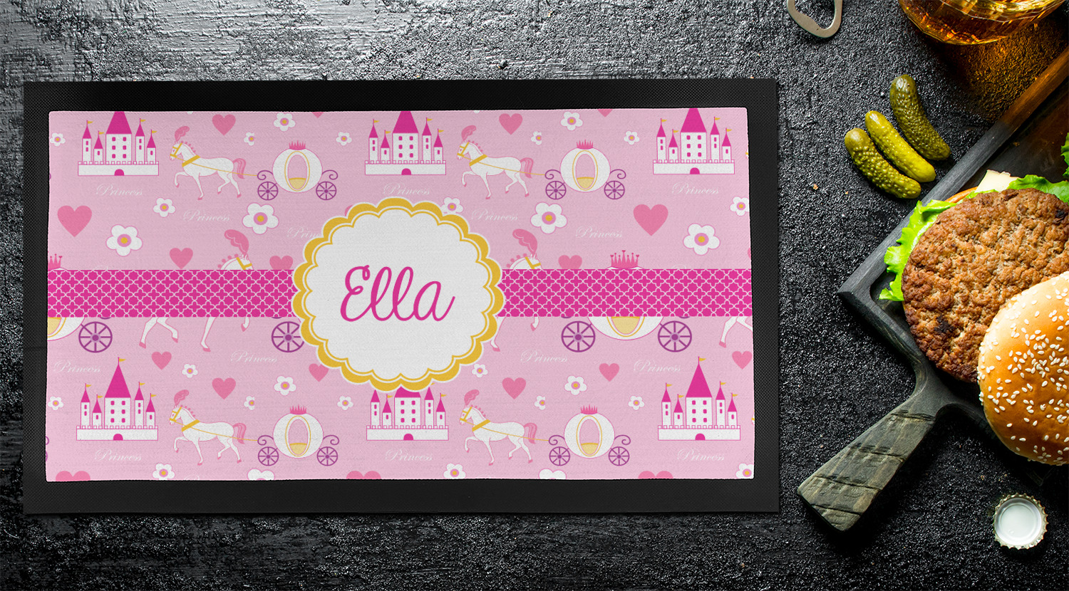 The center piece of the design is a yellow scalloped label, the perfect place for the name of a princess.