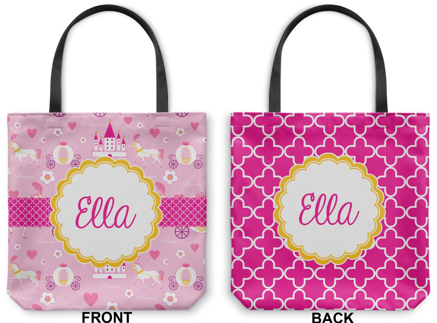 Our all purpose Canvas Totes bags are available in 3 sizes and in hundreds of different designs with many different prints & patterns, which are available in many different colors. You can customize the labels, the ribbons, the personalization styles and of course the fonts.