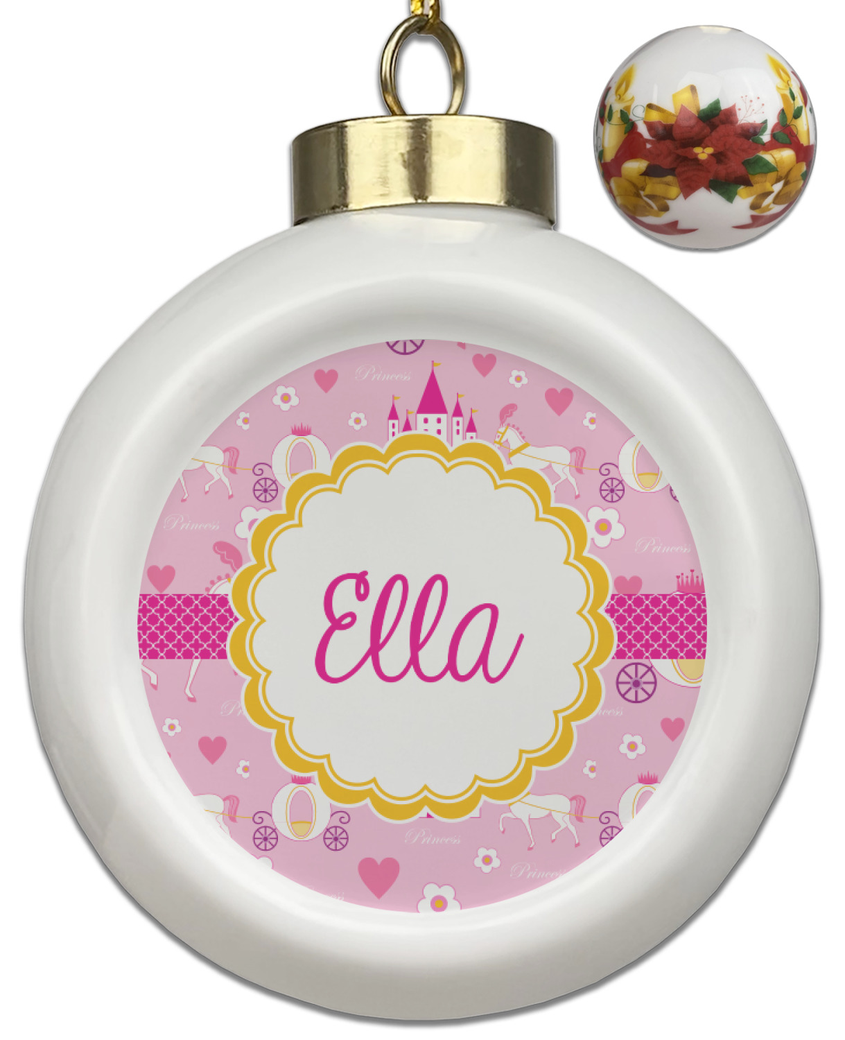 Our Christmas ornaments are a unique ceramic ball shape with a twist as it has a flat face to display your custom design! Select from one of our two design types - Christmas Tree or Poinsettia Garland - to adorn the curved back of your personal design. Each ornament measures 3H x 2.5W x 2D accompanied with a gold string accent for finishing touches to hang on your beautiful Christmas tree!