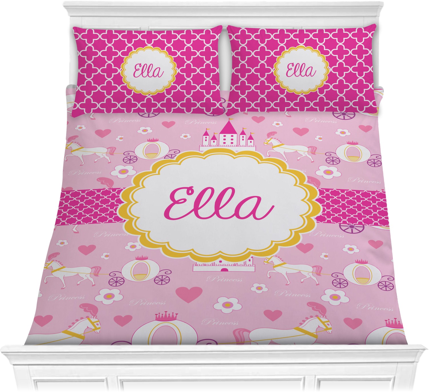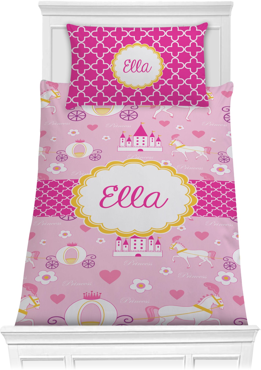 The center piece of the design is a yellow scalloped label, the perfect place for the name of a princess.