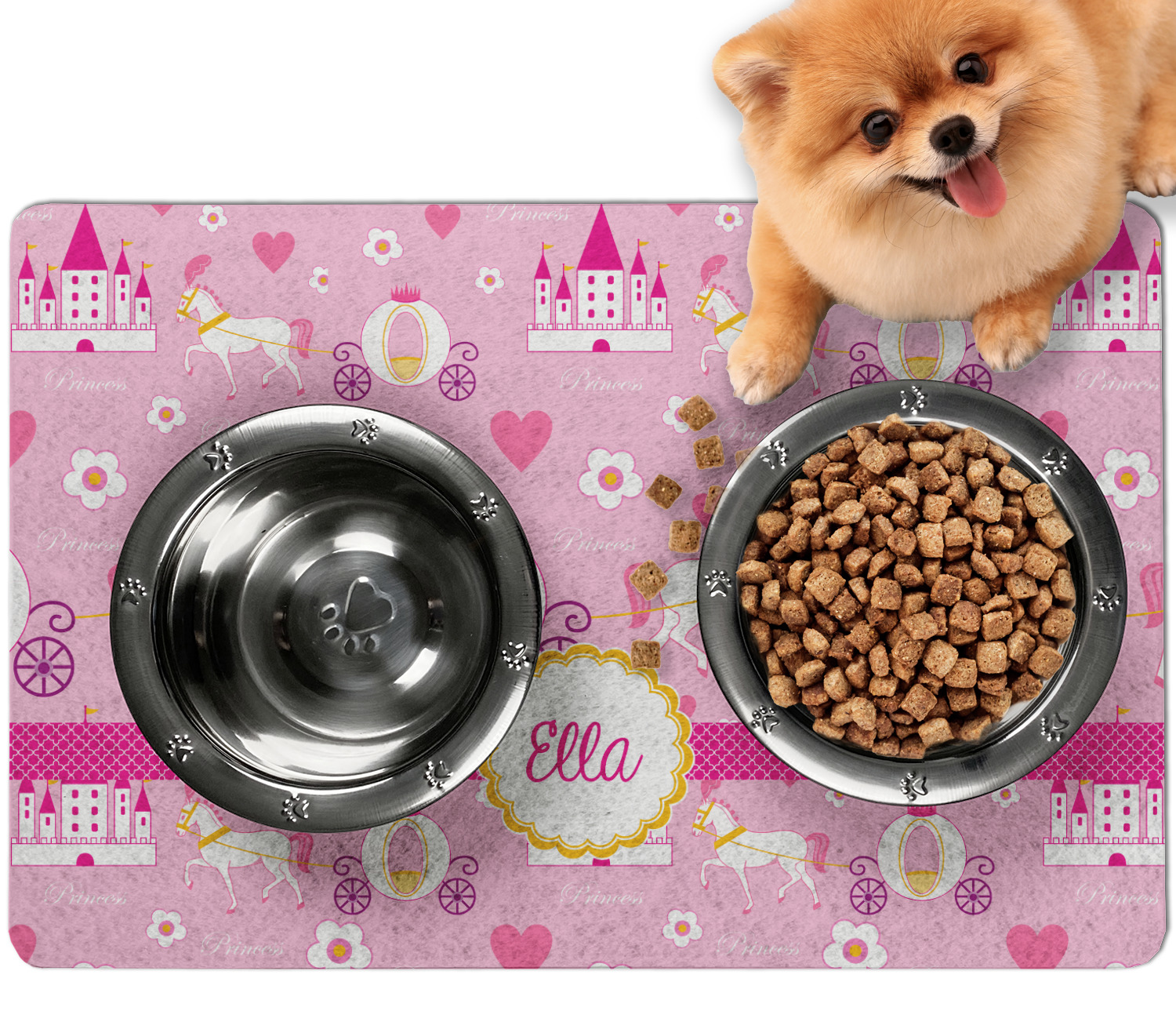 Frustrated with the mess your pets make during mealtime? Personalize a multi-functional dog food mat that prevents spills from reaching your floors, while also incorporating some cute decor to your dog's eating area!