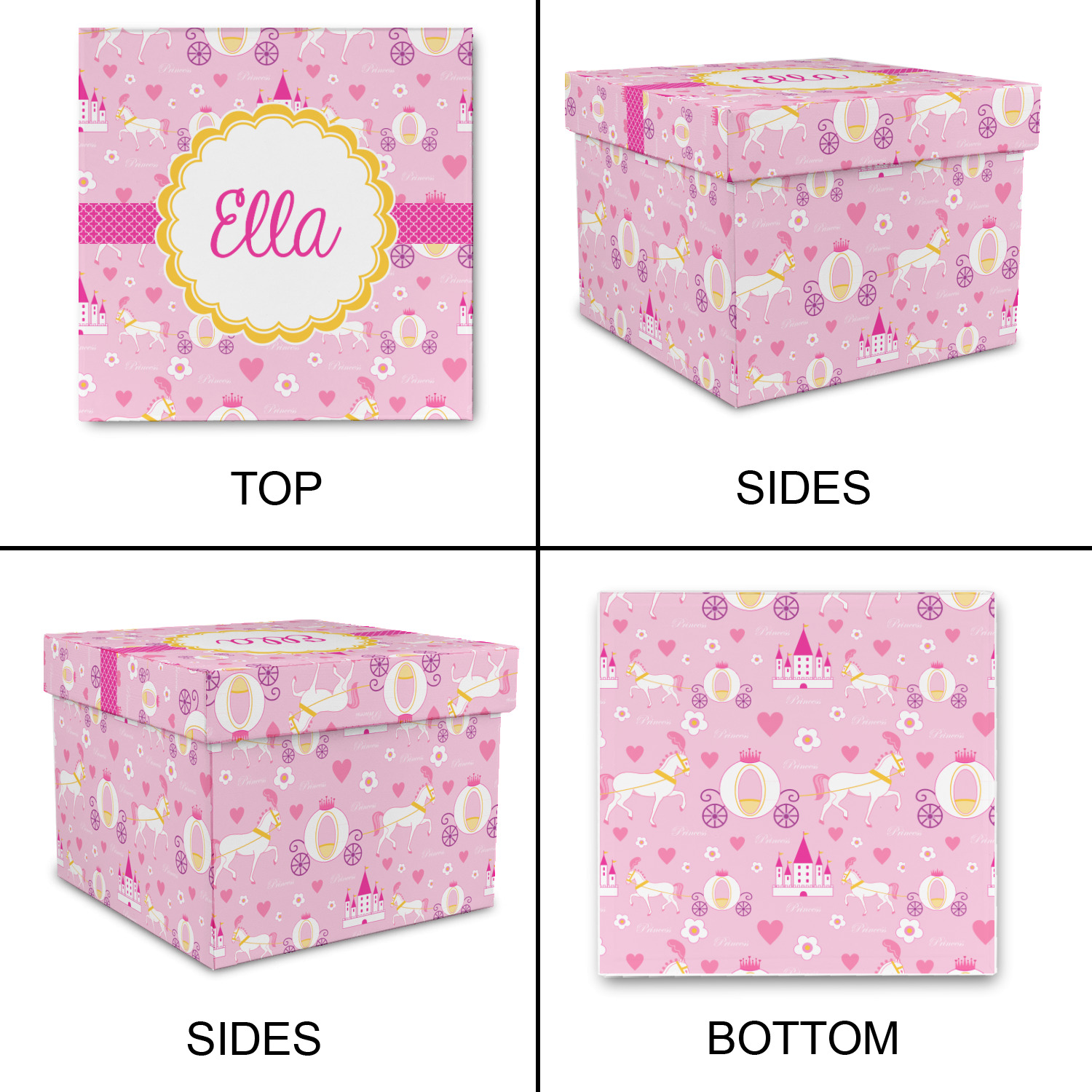 The center piece of the design is a yellow scalloped label, the perfect place for the name of a princess.