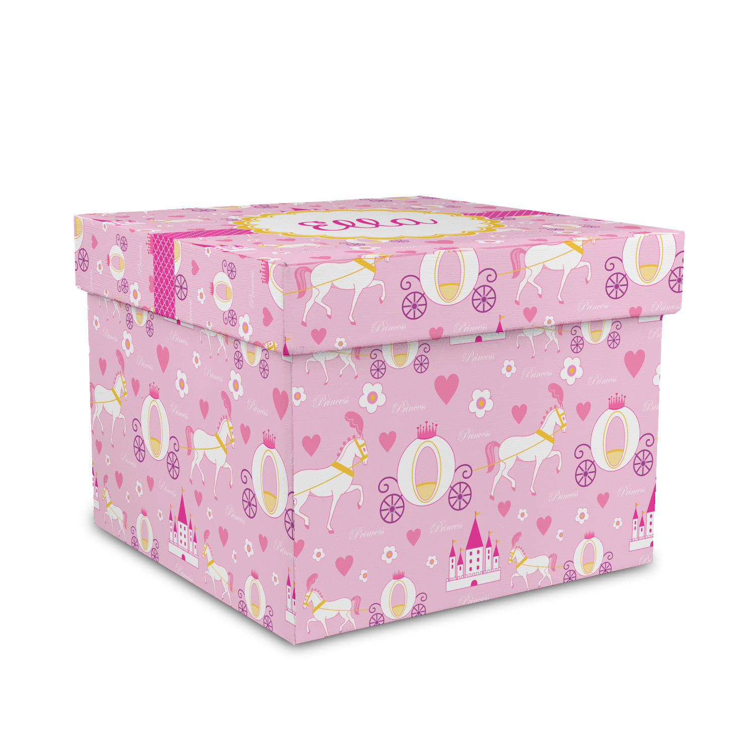 This pretty pink print makes the statement that your little girl is the Princess. This print features a palace horse and a royal carriage as your Princess makes her way to the castle in a flurry of flowers and hearts.