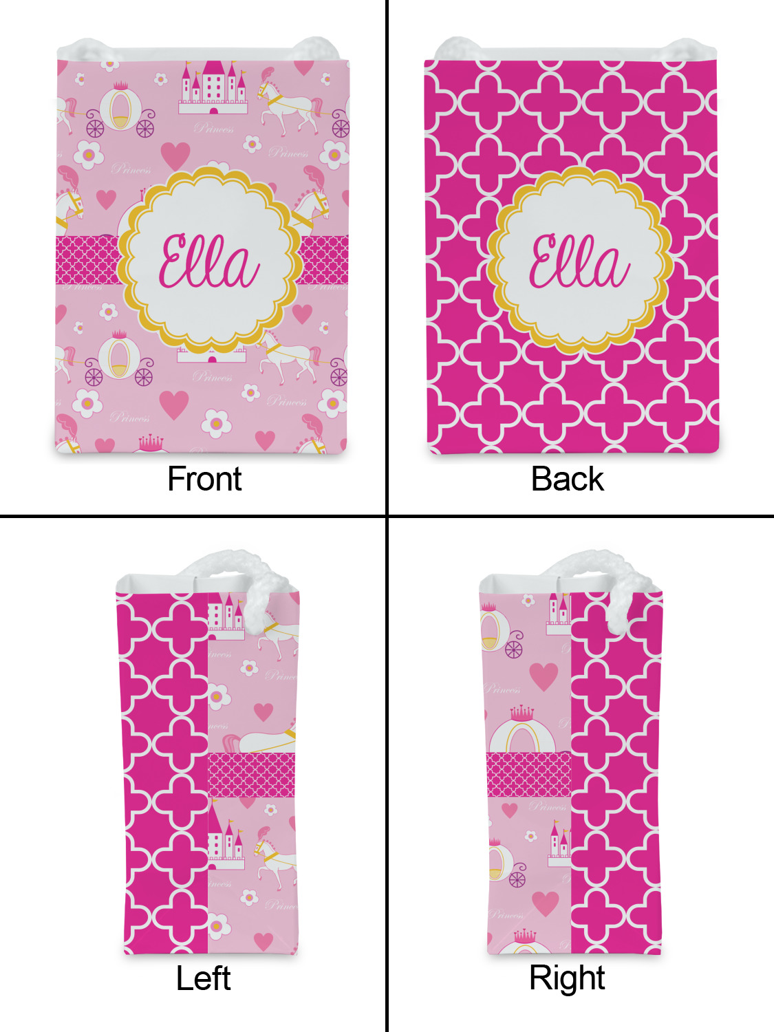 The center piece of the design is a yellow scalloped label, the perfect place for the name of a princess.