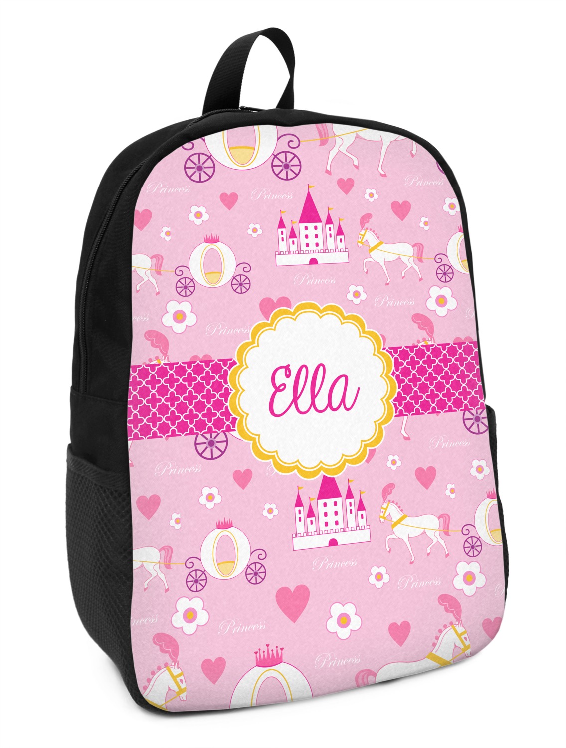 The center piece of the design is a yellow scalloped label, the perfect place for the name of a princess.