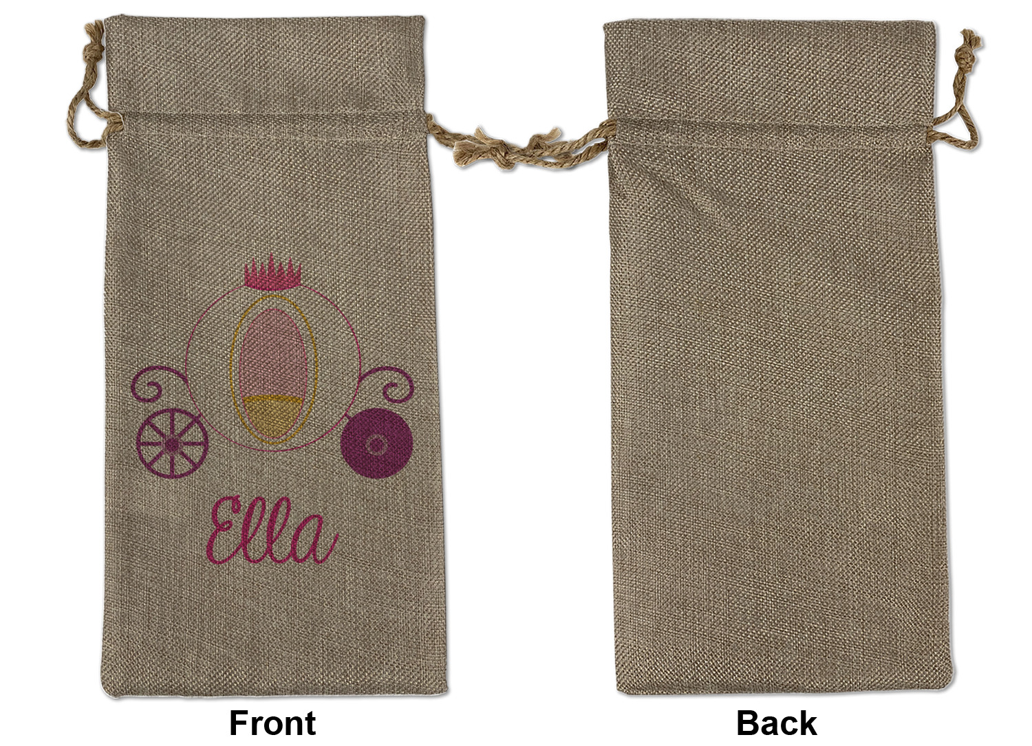 We sell our Burlap Gift Bags in 3 variant sized bags. Made with burlap polyester, each personalized bag can be secured with a twine drawstring pull. Your custom design is available to print on one side or both sides - completely up to you! The sizes of the bags measure approximately 4.5" x 6.5" for the smallest size, 6.5" x 8.0" for the medium size, and 6.5" x 13.5" for the large-sized bag.